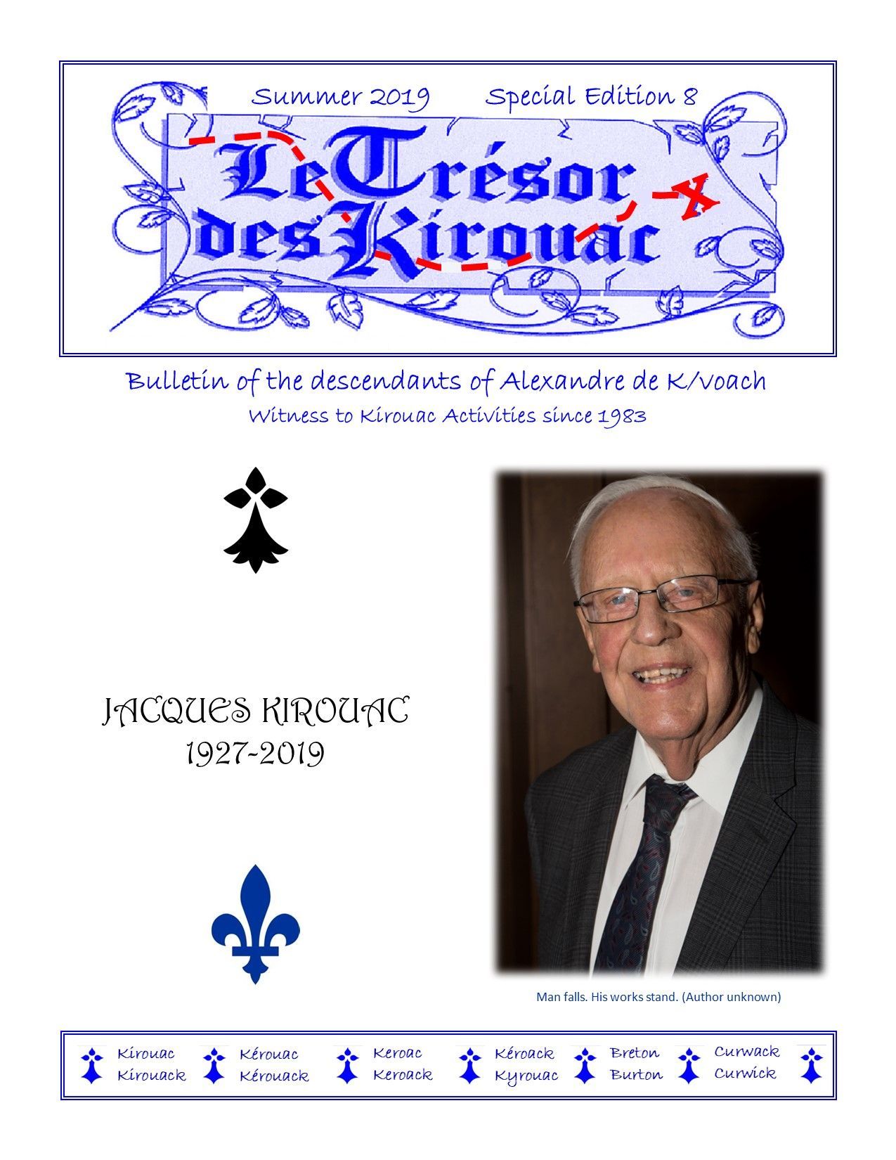 Le Trésor des Kirouac, Special Edition, number 8, Jacques Kirouac, founding president of the Kirouac Family Association; 2019