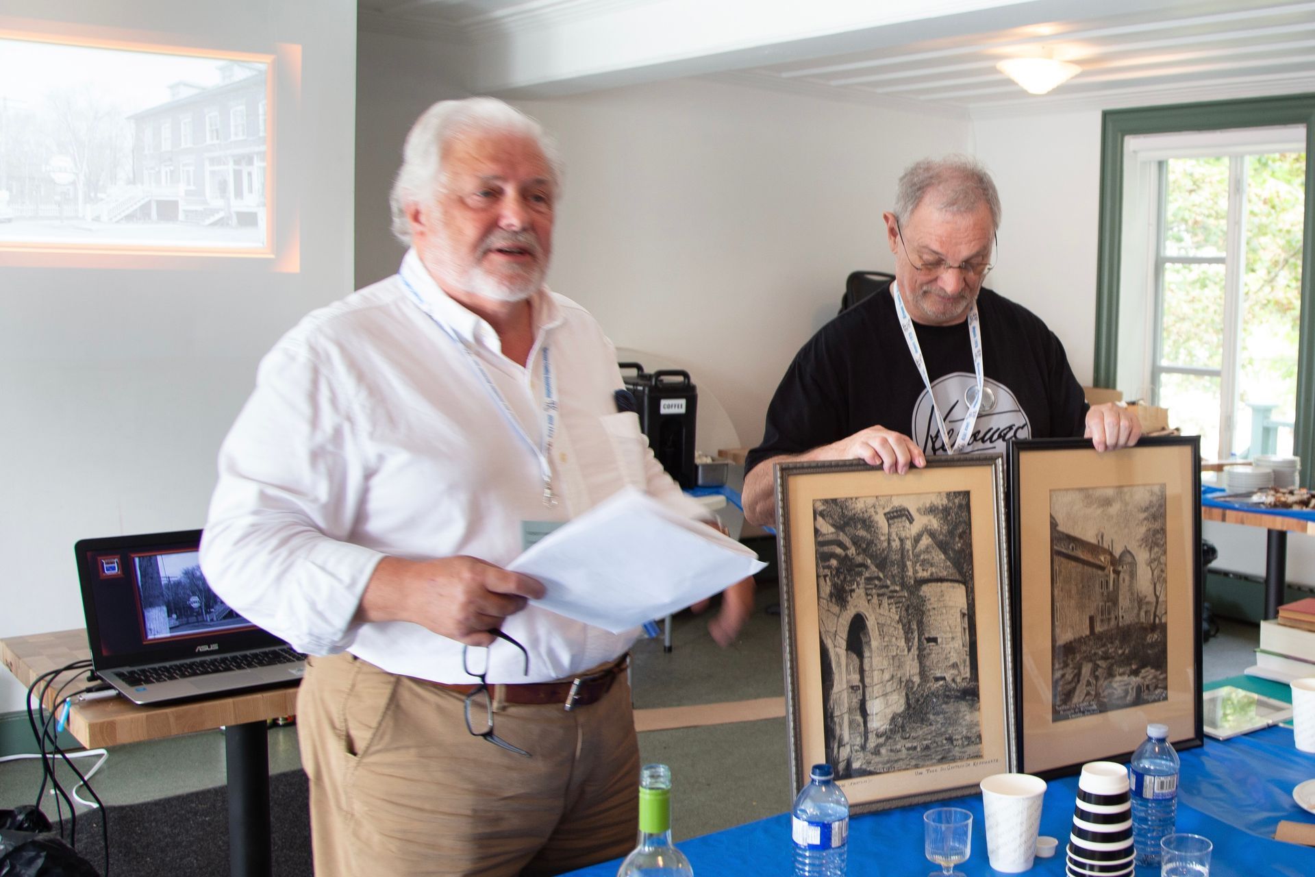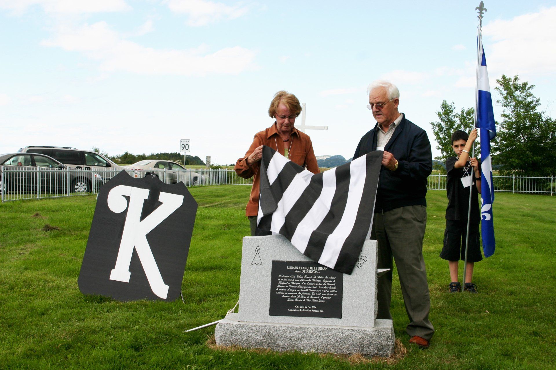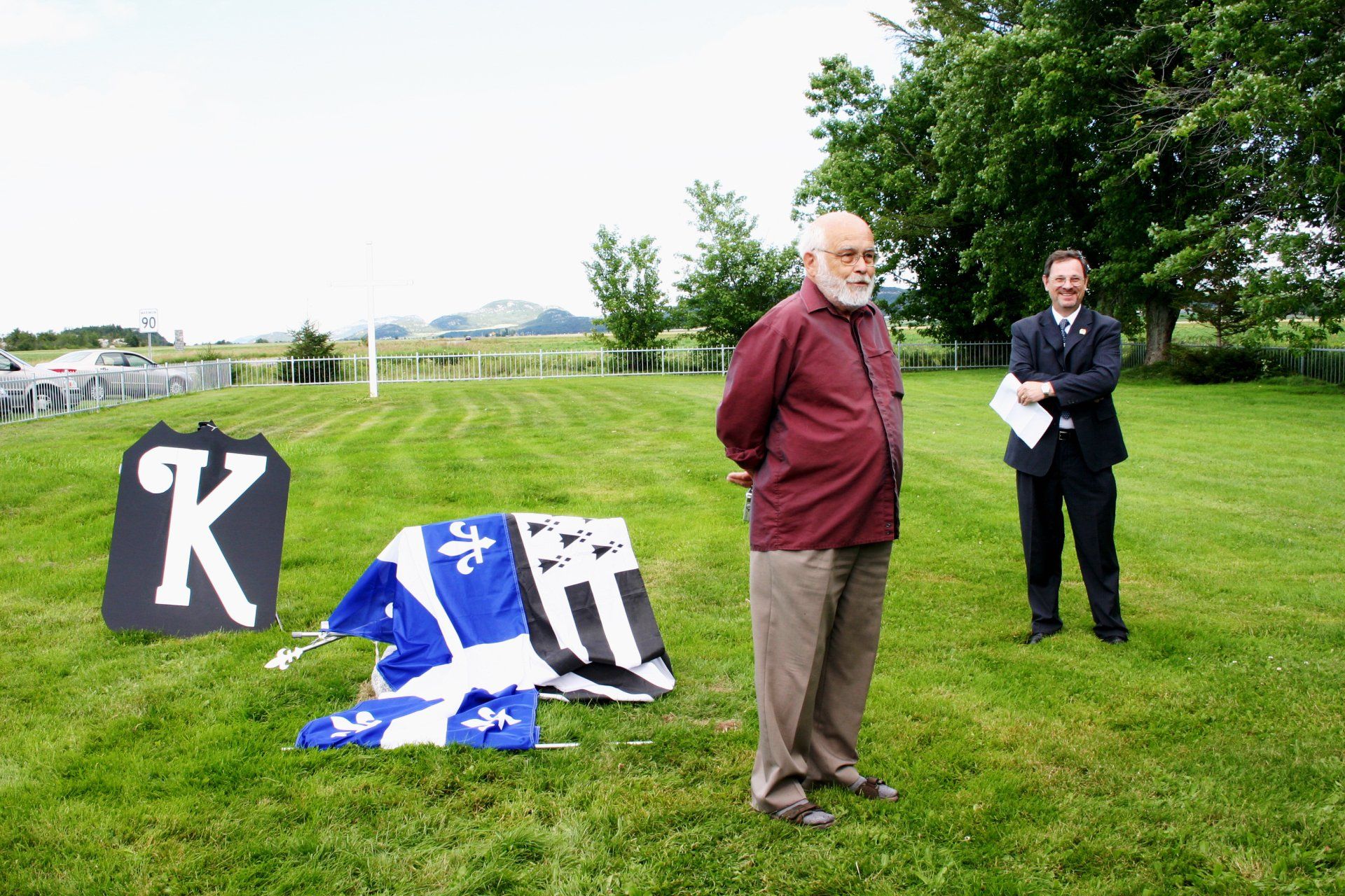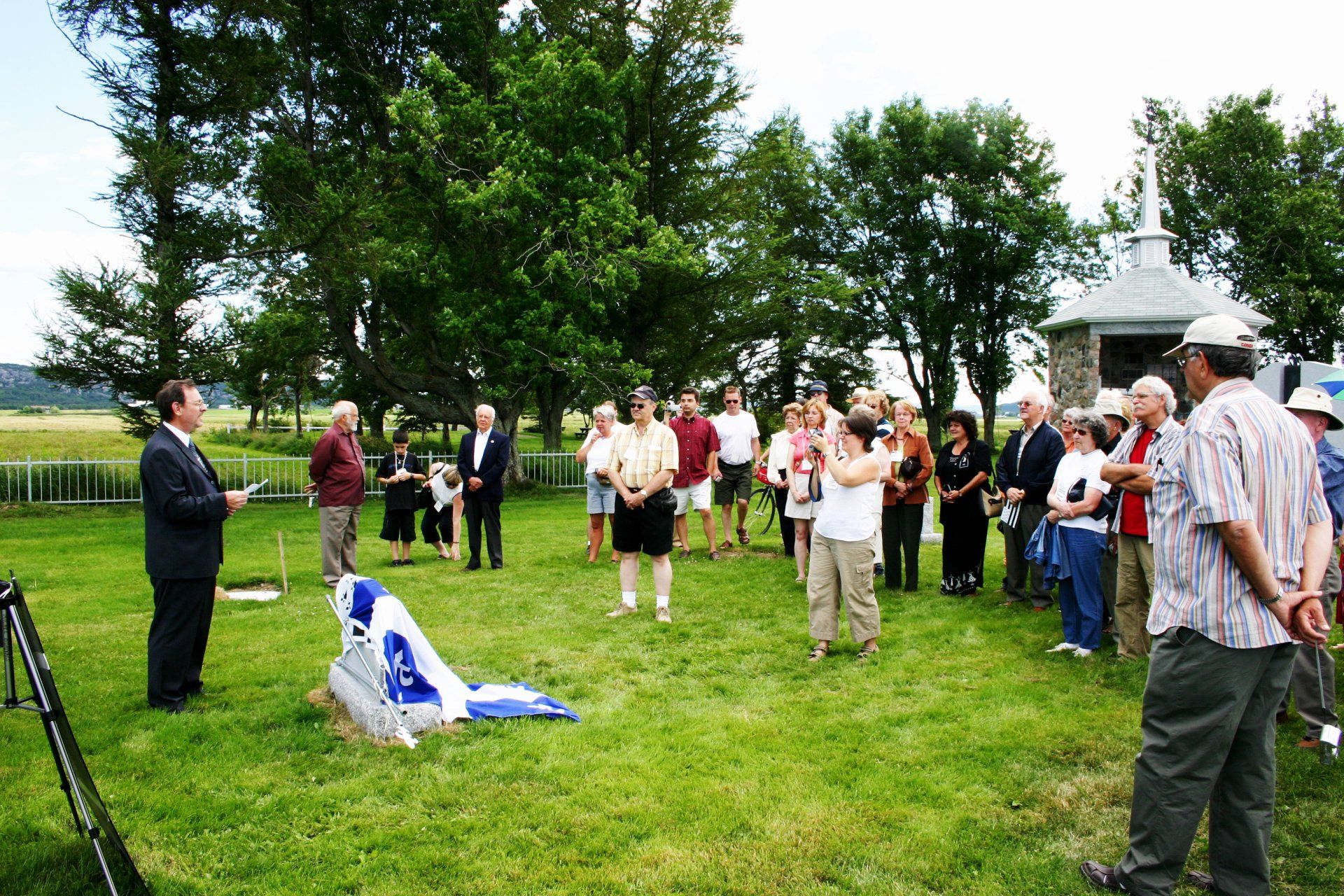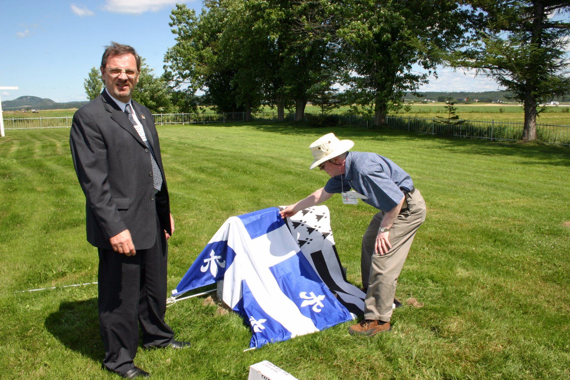 Préparatifs à la cérémonie du dévoilement de la stèle dédiée à l’Ancêtre des familles Kirouac.