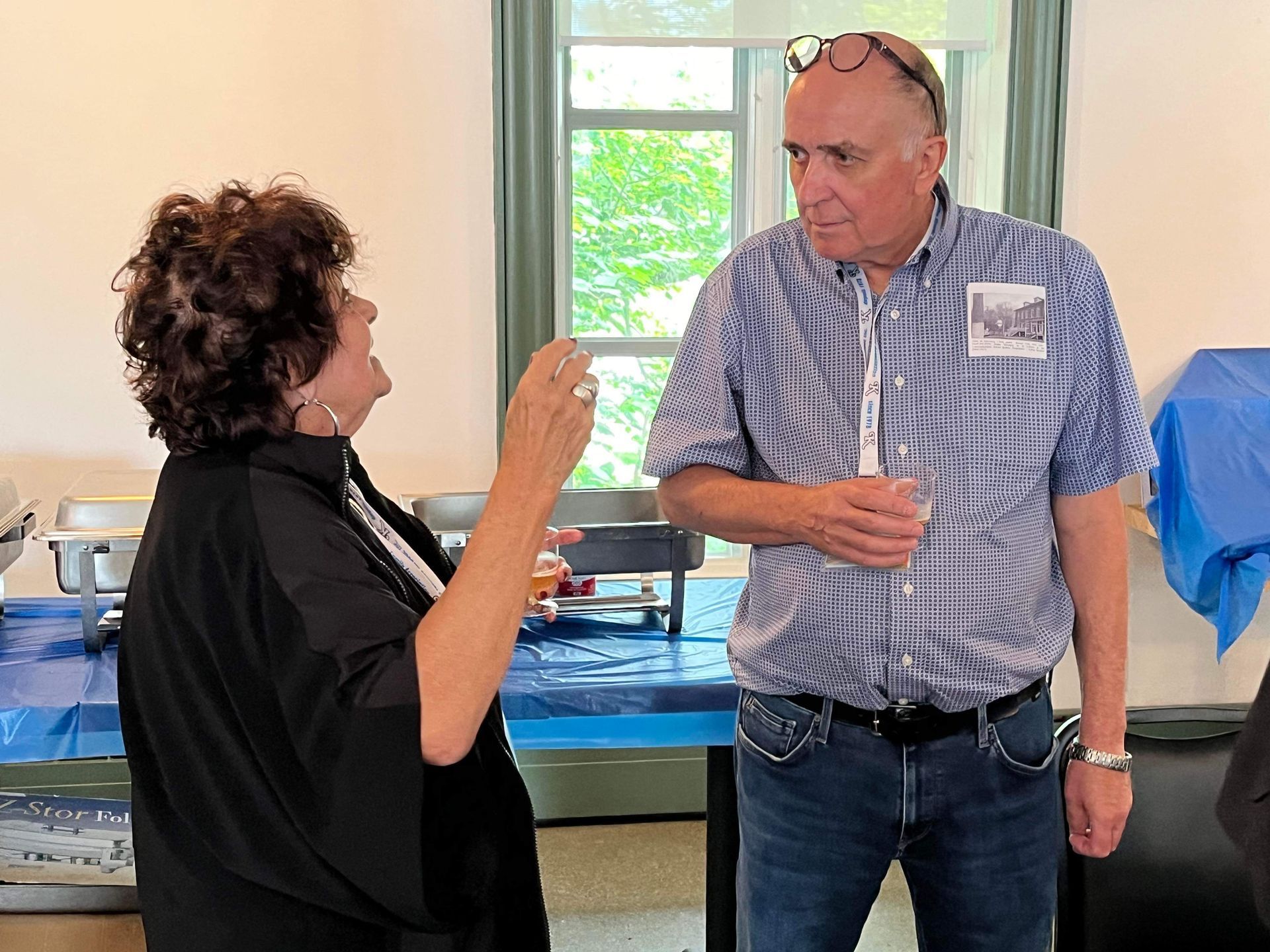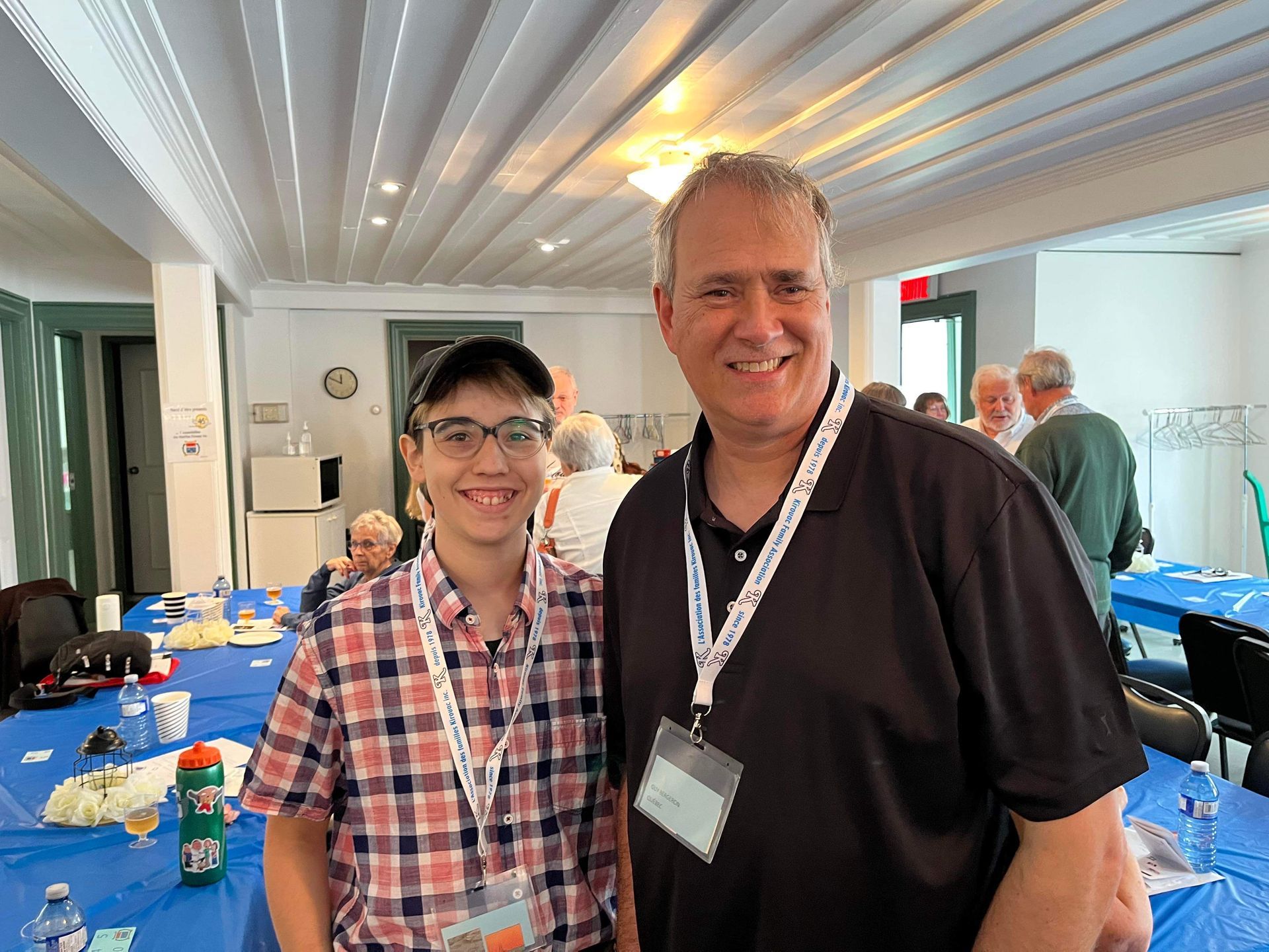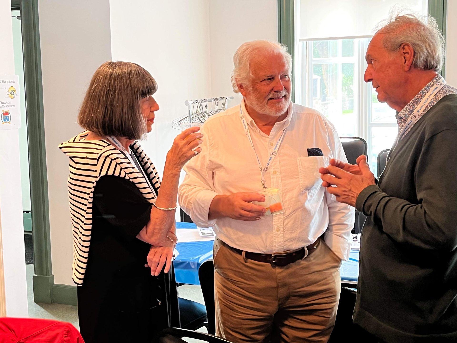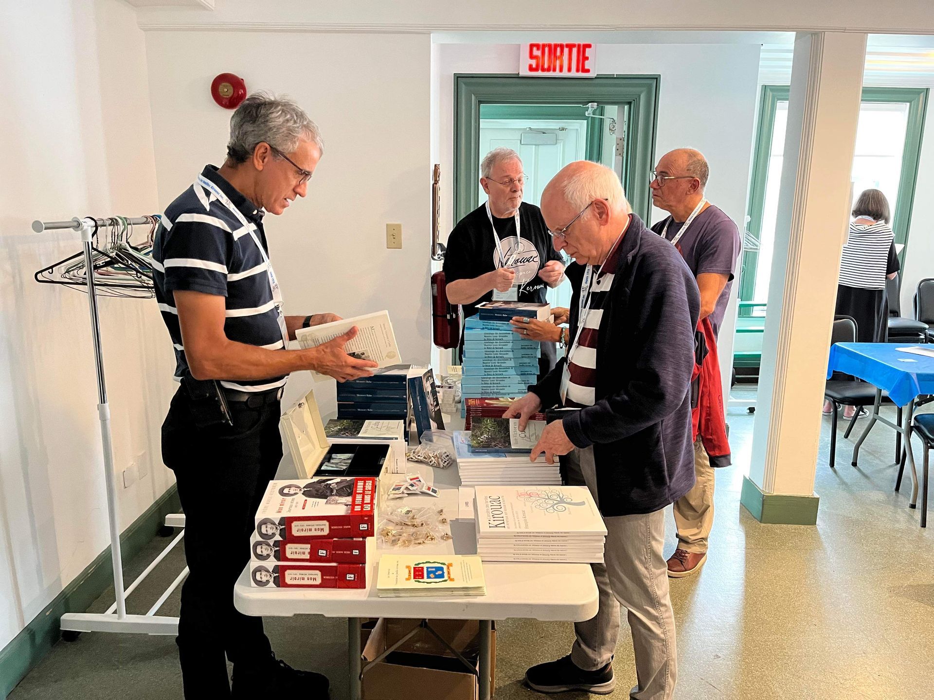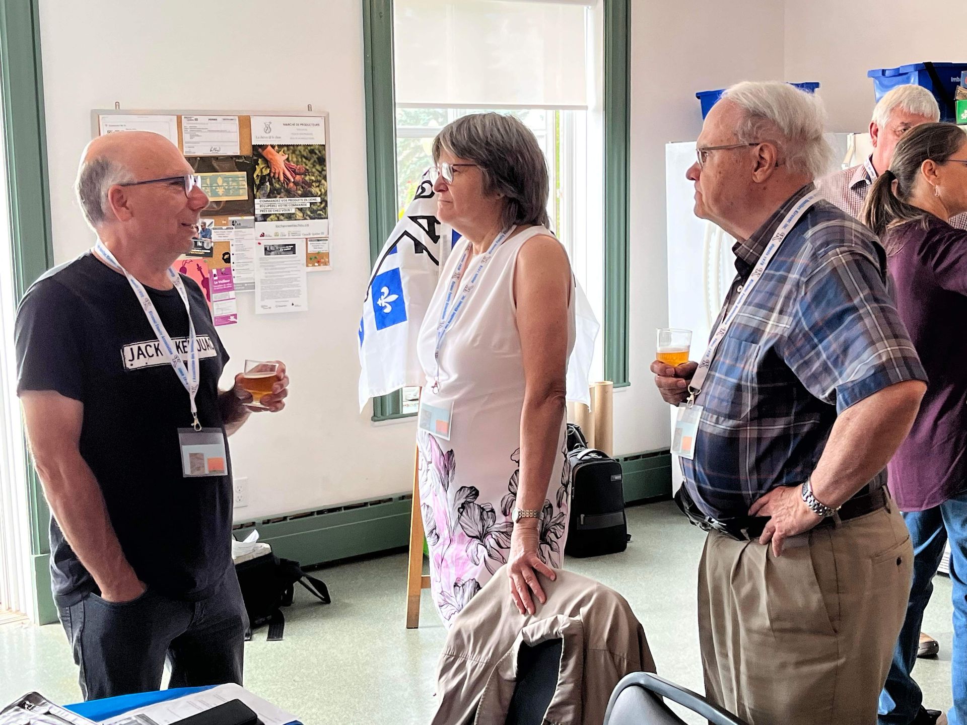 Marc Villeneuve, conjoint de Mercédès Bolduc et co-responsable des rassemblements annuels, reçoit et informe Pierre Kirouac. À l'arrière, François Kirouac discute avec Daniel Welt.