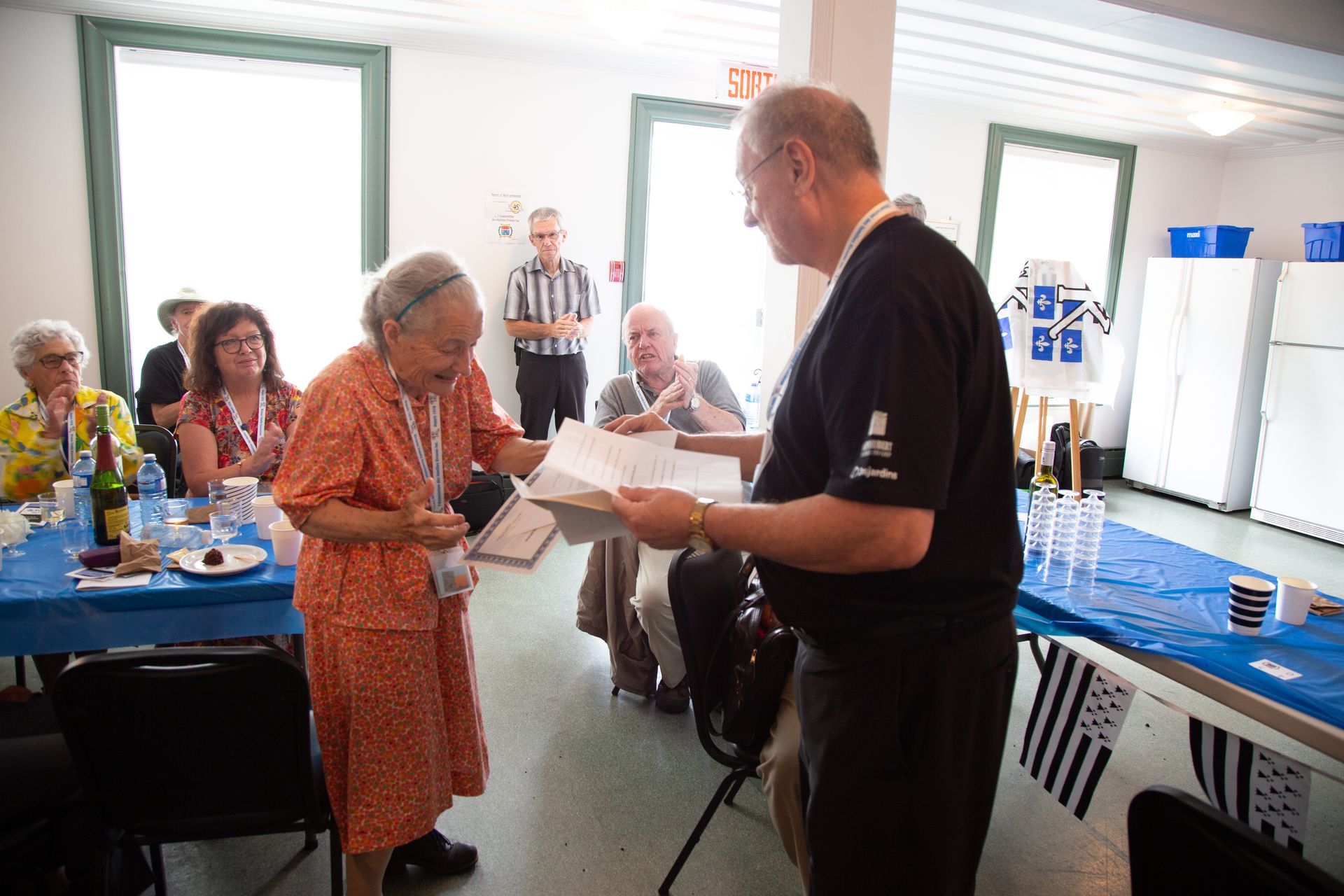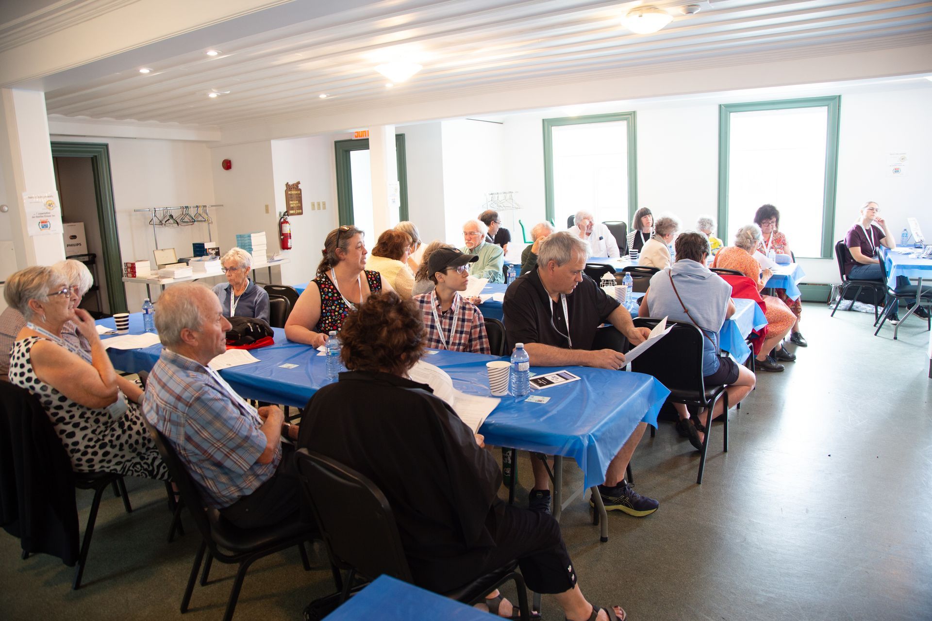 Accueil des participants. Au centre de la photo, la responsable de l'accueil, Marielle Kérouac.