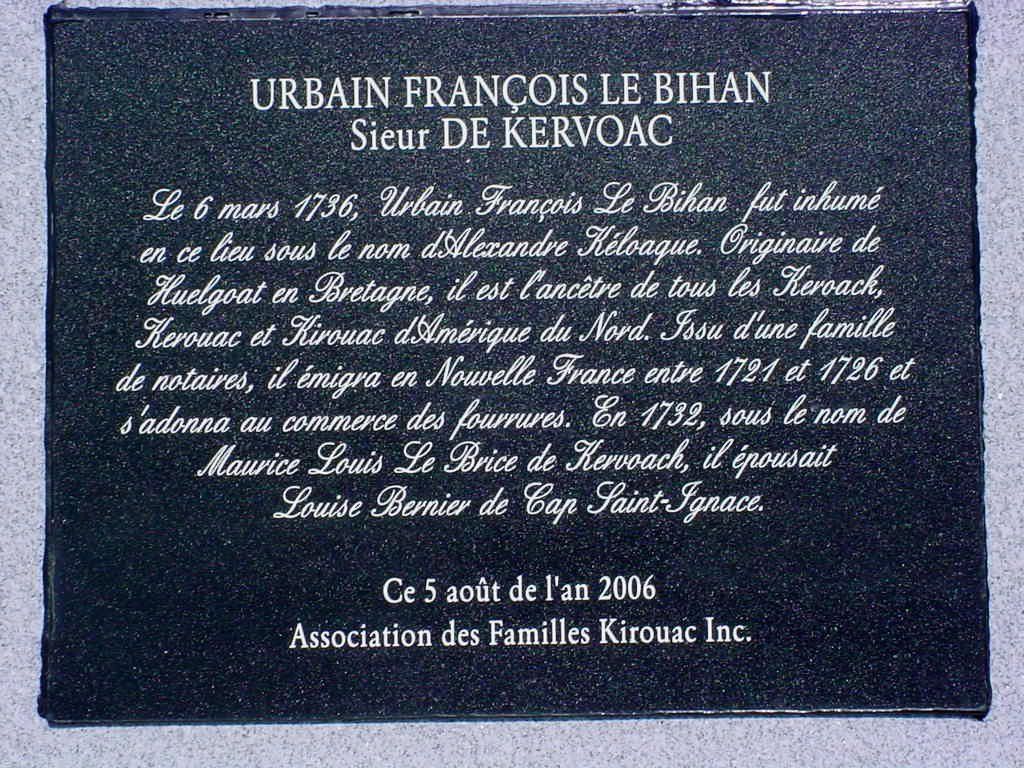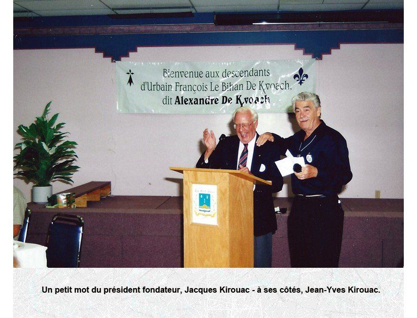 Jacques Kirouac qui a présidé à la fondation de l’AFK, au premier grand rassemblement des descendants d’URBAIN FRANCOIS LE BIHAN Sieur DE KERVOAC et qui désireux de mieux connaître l’Ancêtre, a lancé les premières démarches consacrées à cette fin, en Bretagne.