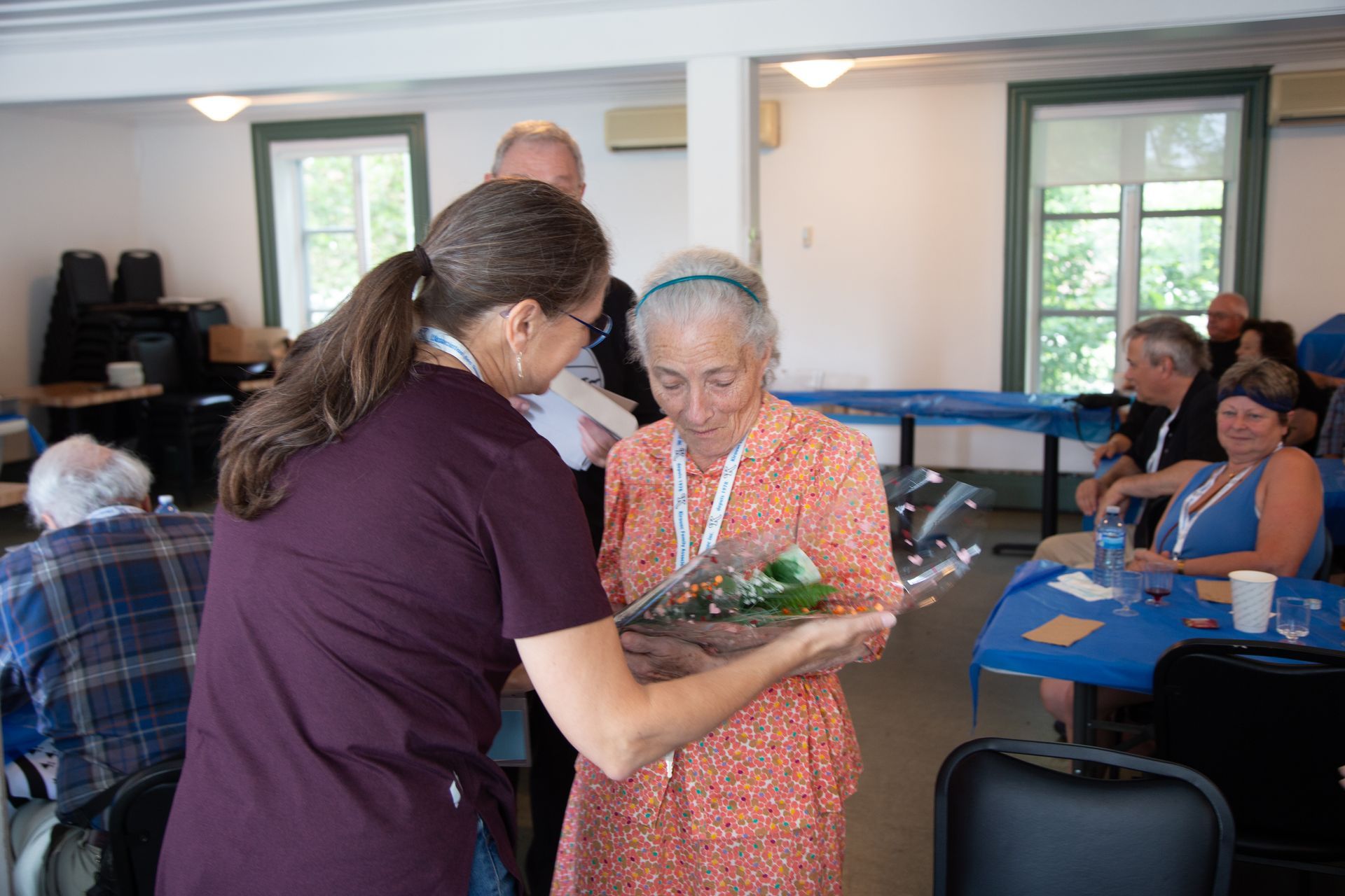 Michel Bornais remet un cadeau de reconnaissance à Lucille Kirouac pour sa participation à l’organisation de cet important rassemblement.