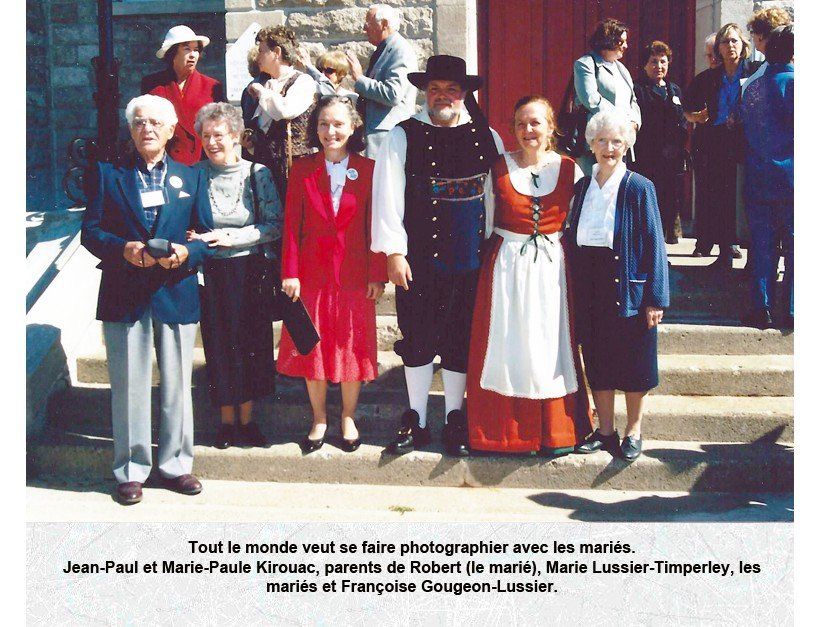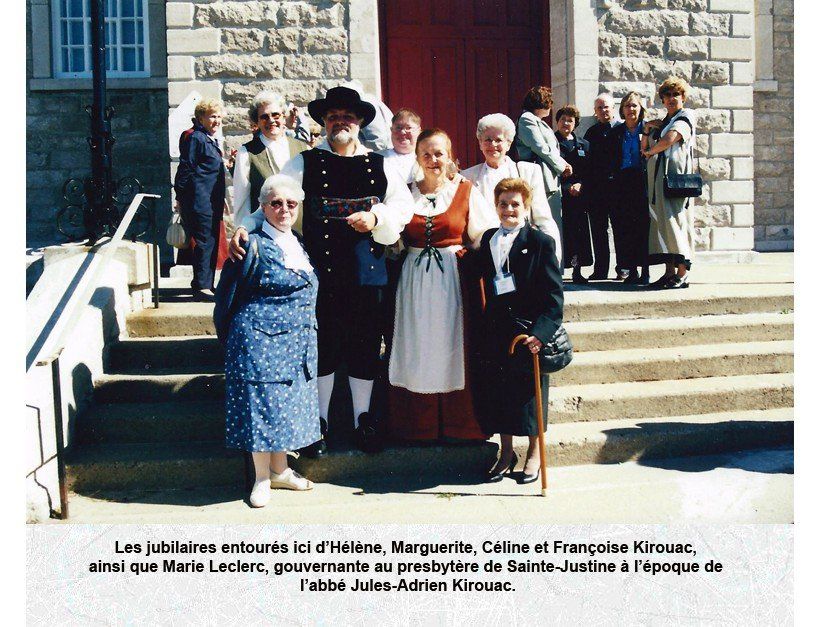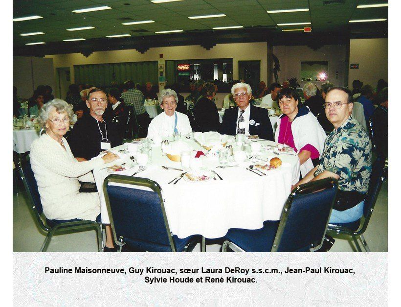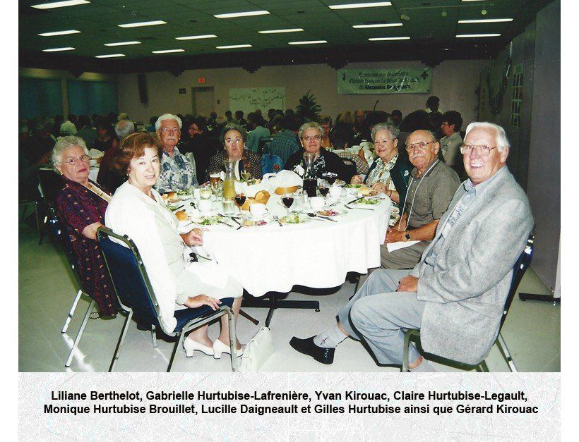À sa gauche, on reconnaît Robert Kirouac, Hectorine Hébert, Marie-Paule Normand, Jean-Paul Kirouac, René Kirouac et Marie-Rose Frégeau.