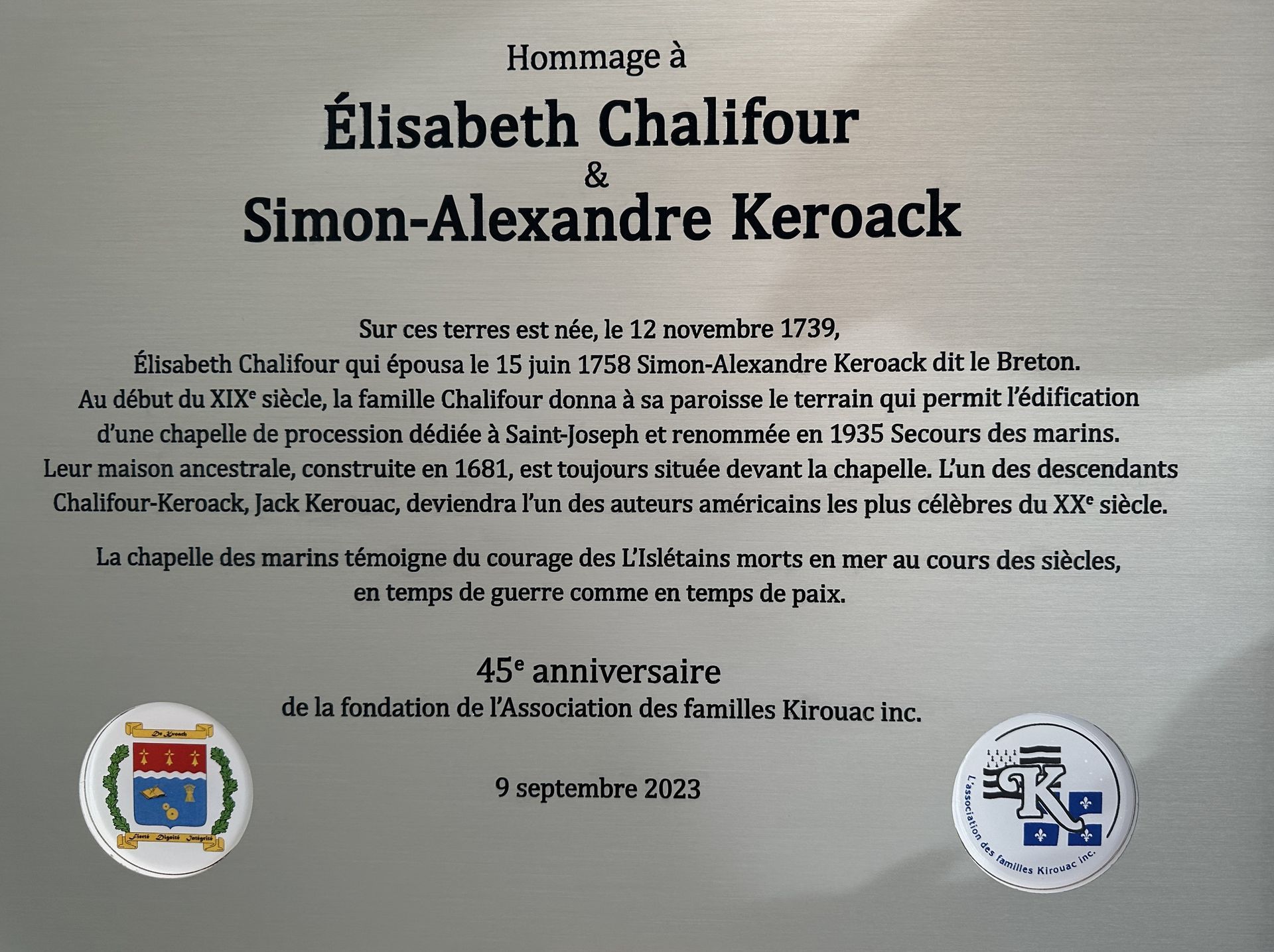 Plaque commémorative dévoilée le 9 septembre 2023 à L'Islet.