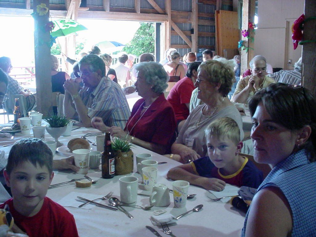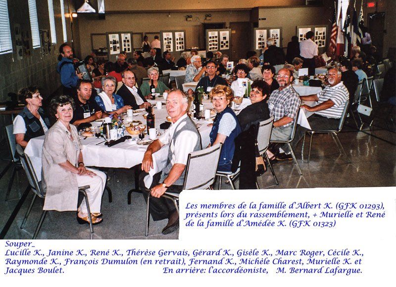 Même groupe sous un angle différent. De gauche à droite en commençant par la dernière rangée (même si on ne les voit pas toujours ils ou elles sont là). Nicole Kirouac (GFK 01334), René Kirouac (GFK 01332), Hélène Kirouac et Luc Pelletier ; Chantal Girouard, Danielle Girouard, Raymonde Kérouac et Nancy Beckman Kyrouac ; Jean-Louis Kirouac, Greg Kyrouac et Sylvie Houde ; Marie Lussier Timperley, Lucille Kirouac, Serge Kirouac ; Nicole Kirouac, Gemma Morin, France Gauthier, Robert Kirouac et André Kirouac.