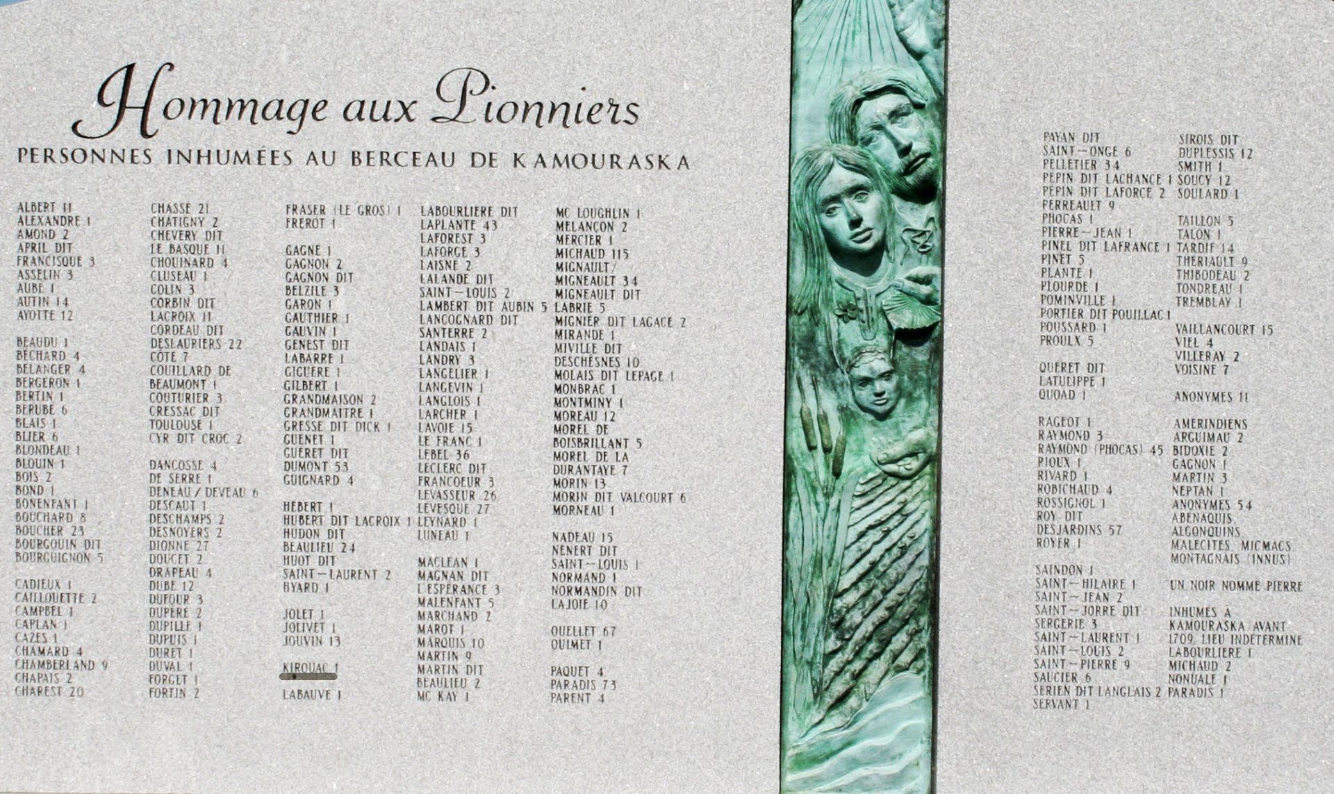 Très beau monument en hommage aux pionniers de Kamouraska.