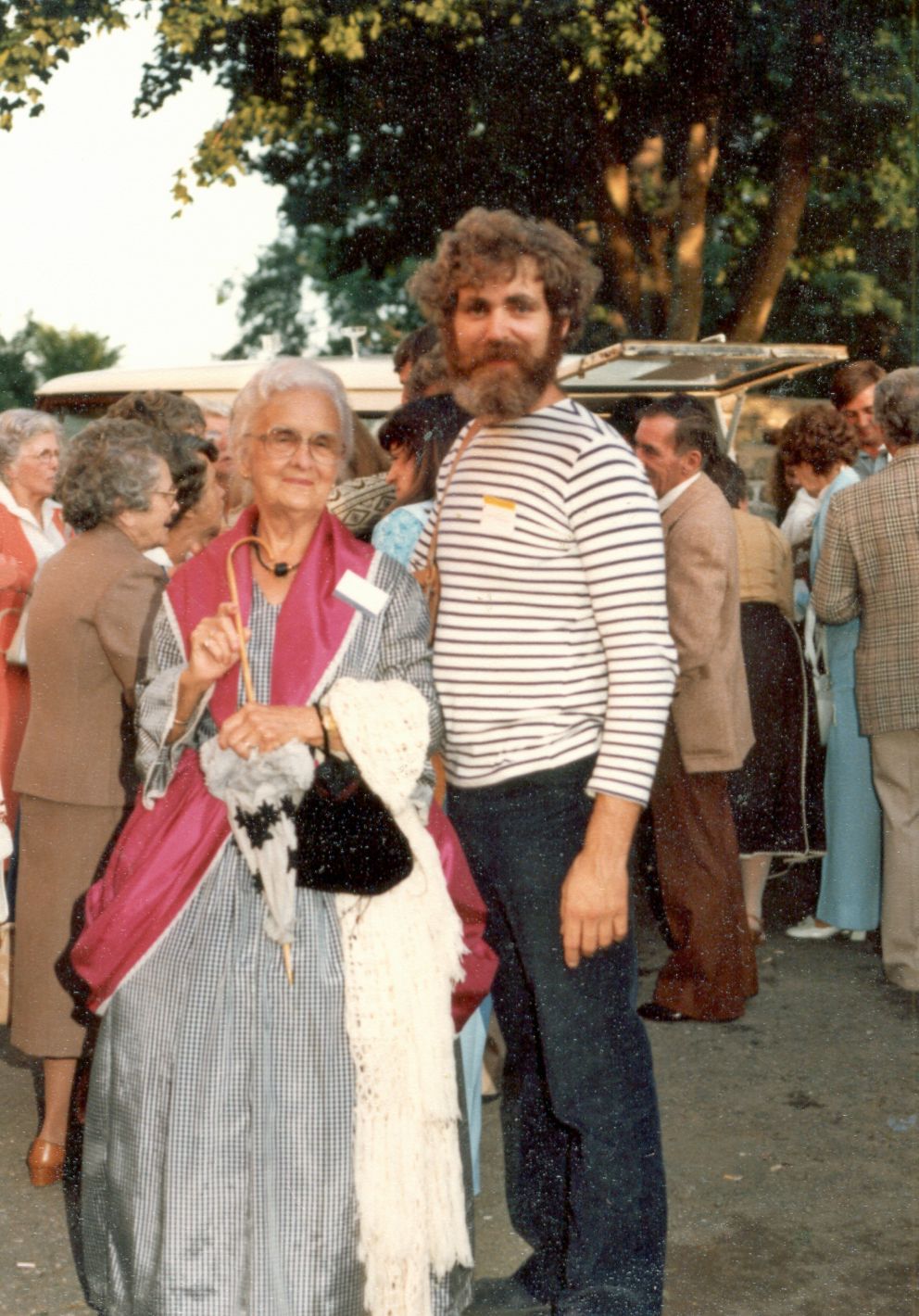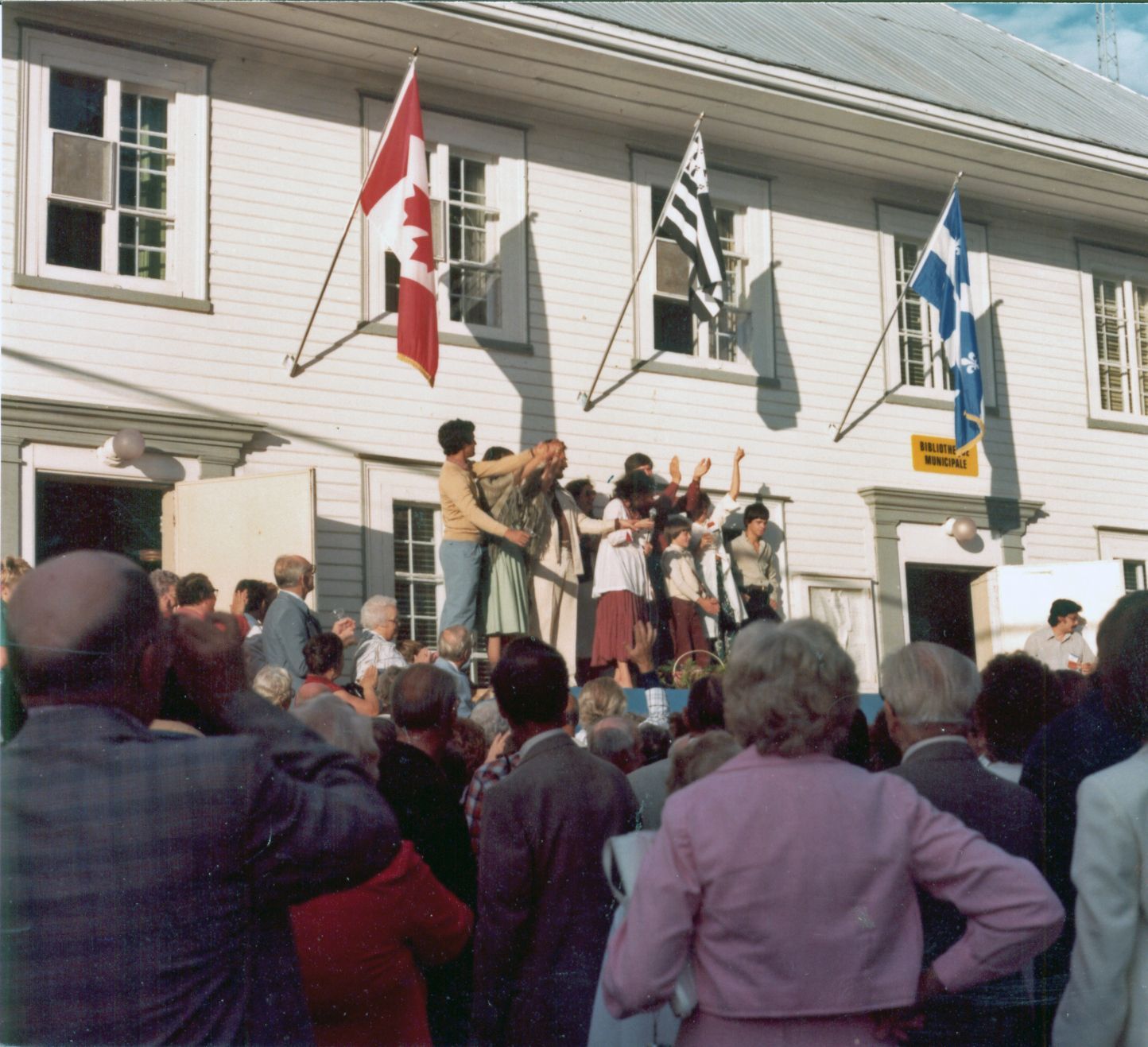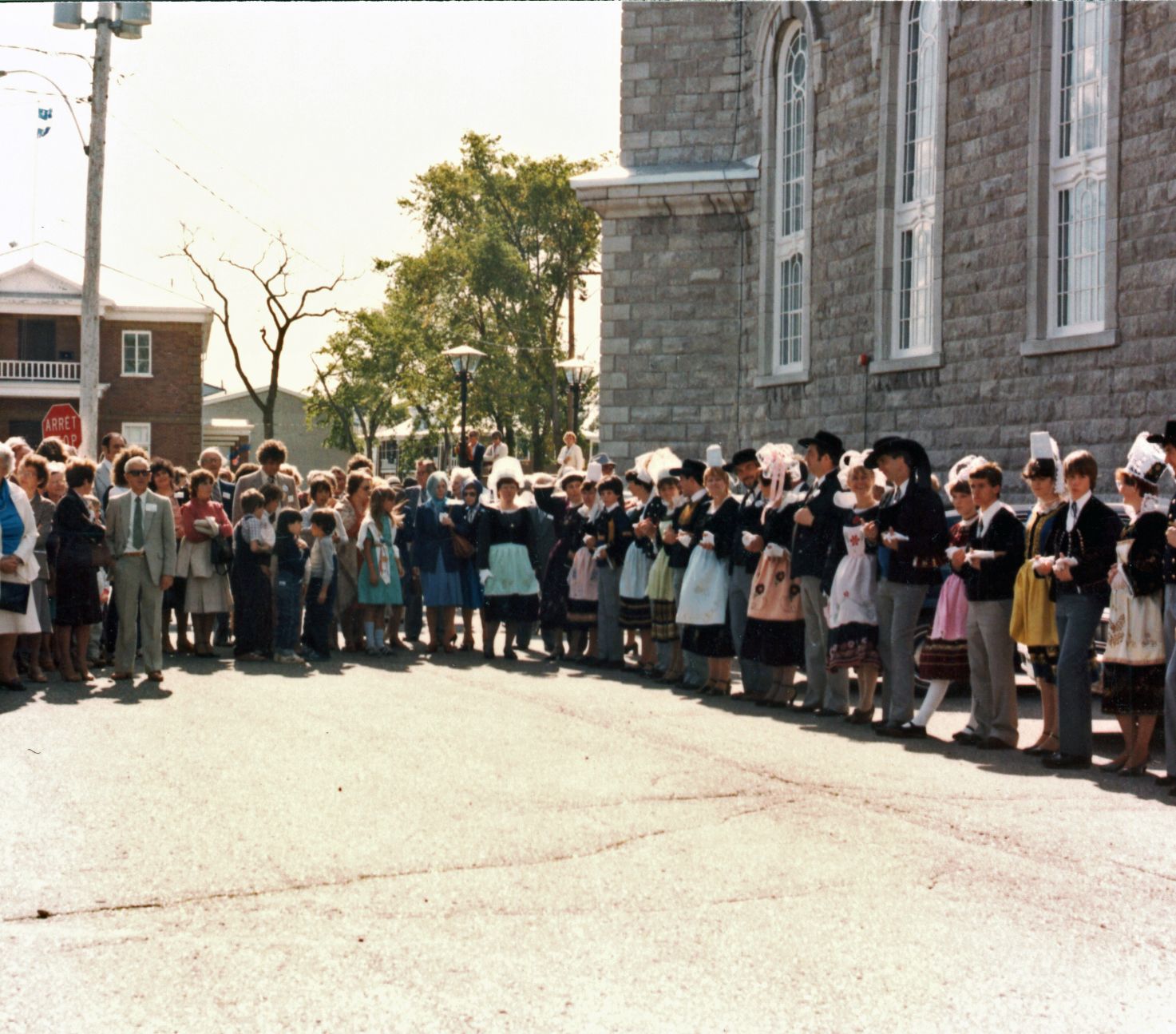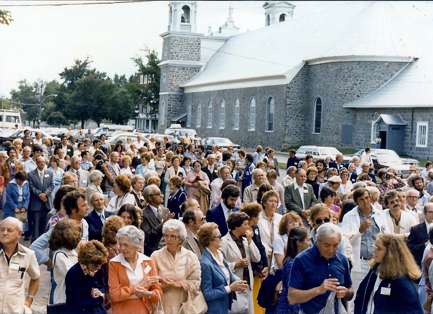 Une partie des 700 participants à la première grande rencontre des familles Kirouac à L'Islet les 16 et 17 août 1980 lors de l'ouverture de la fête.