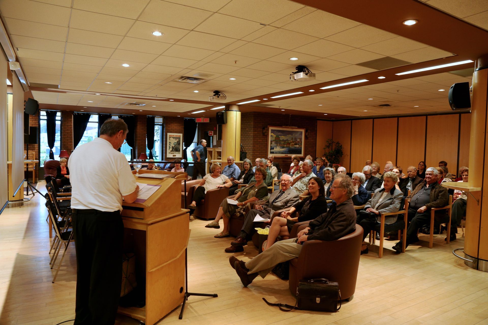 François Kirouac répondant aux questions suscitées par la présentation du document PowerPoint intitulé : Jack Kerouac... sur la route de ses racines.