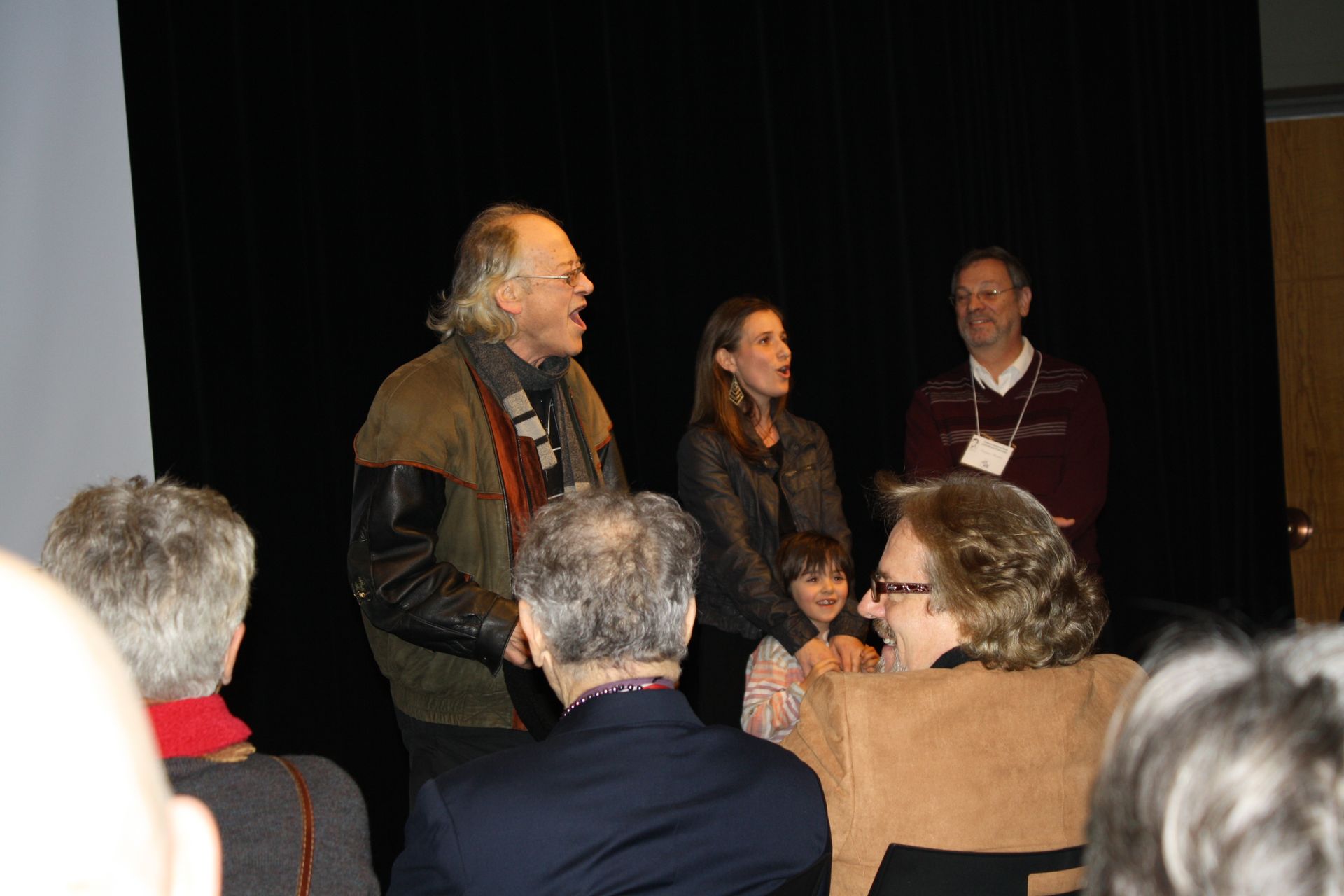 Un participant, Roger Brunelle, Jacques Kirouac et David Amram.