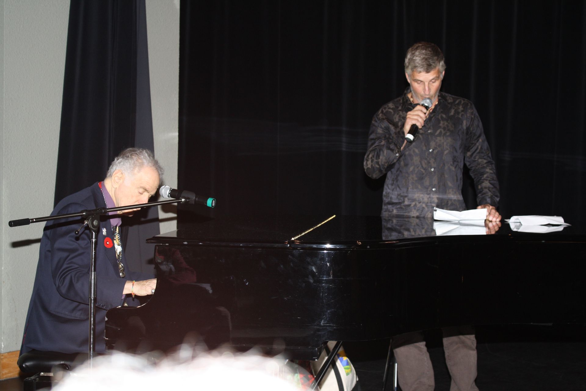 Yves Kirouac, fils de Renaud Kirouac et Denise Pépin, accompagné au piano par son ami, David Amram, lit des extraits de l’œuvre de Jack Kerouac.