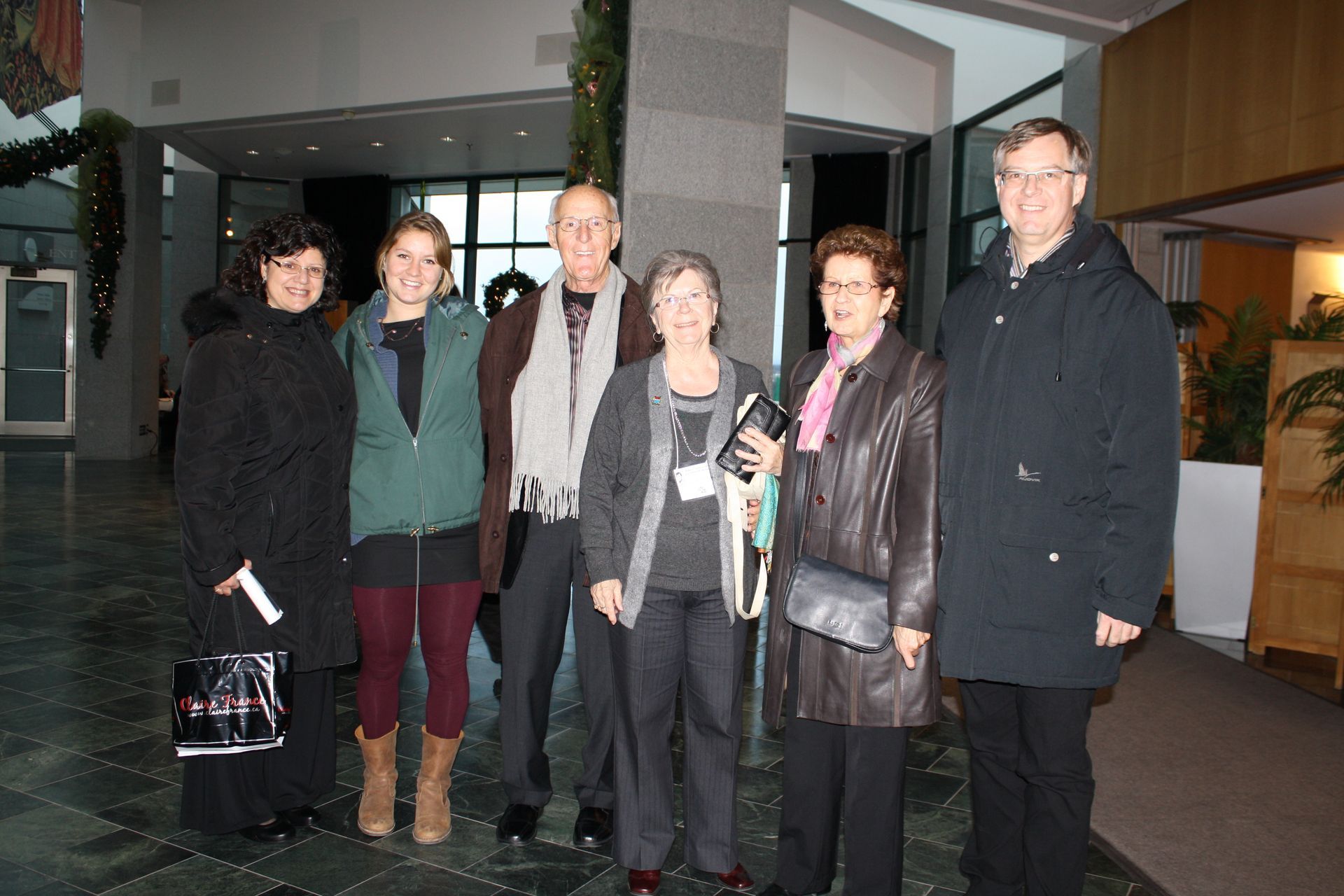 Lucille Kirouac en compagnie de la famille de Renaud Kirouac. Ils sont venus assister, à l’événement Kerouac/Québec 2012 en après-midi et en soirée, au lancement du livre du fils de Renaud, Yves Kirouac : Ma poursuite spirituelle de Jack Kerouac à 150 km/h. De gauche à droite : Renée Kirouac, ………, Renaud Kirouac, Lucille Kirouac, Denise Pépin et Jean-François Kirouac.