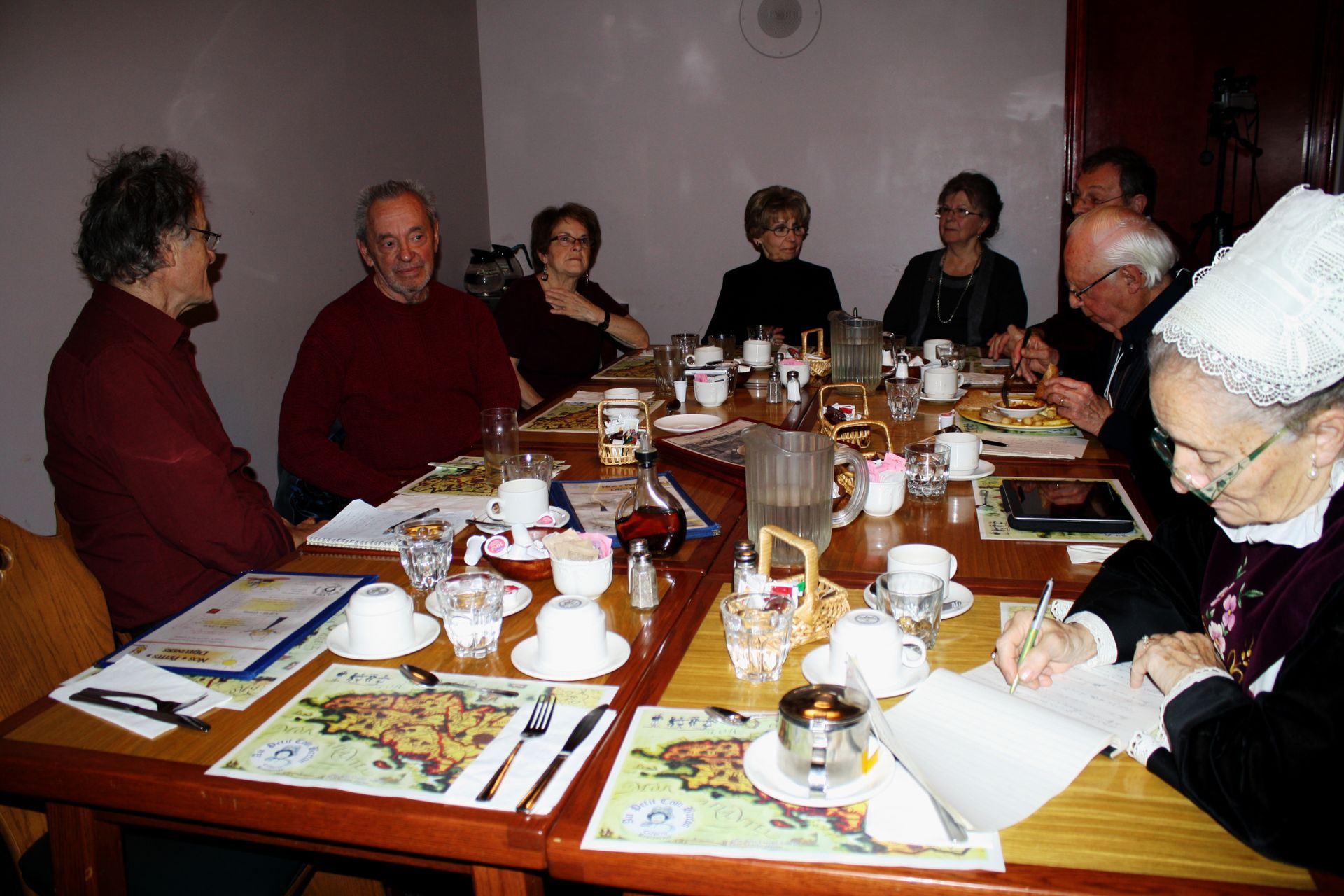 L’Association a profité du passage à Québec de monsieur Roger Brunelle, dans le cadre du 25e anniversaire de la Rencontre internationale Jack Kerouac, pour s’entretenir avec lui lors d’un repas Au Petit Coin Breton – Éric Waddell, Roger Brunelle, Yolande Genest, Céline Kirouac, Lucille Kirouac, François Kirouac, Jacques Kirouac et Marie Lussier Timperley.