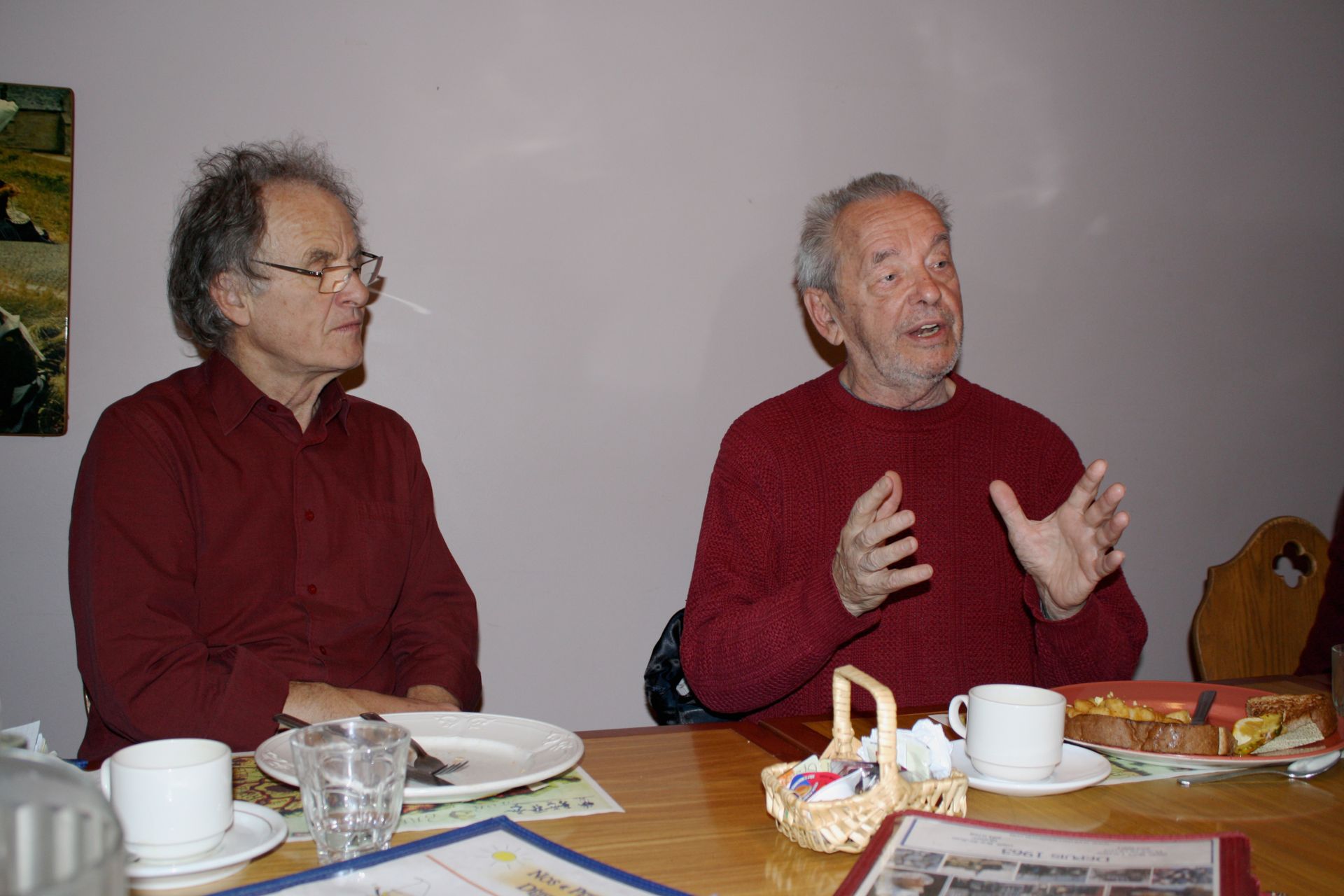 Roger Brunelle accompagné de son ami québécois, Éric Waddell. Tous deux sont de grands spécialistes de l’œuvre de Jack Kerouac. – Monsieur Brunelle nous entretient de son cheminement dans la découverte et la connaissance de l’écrivain et de l’homme franco-américain, Jack Kerouac.