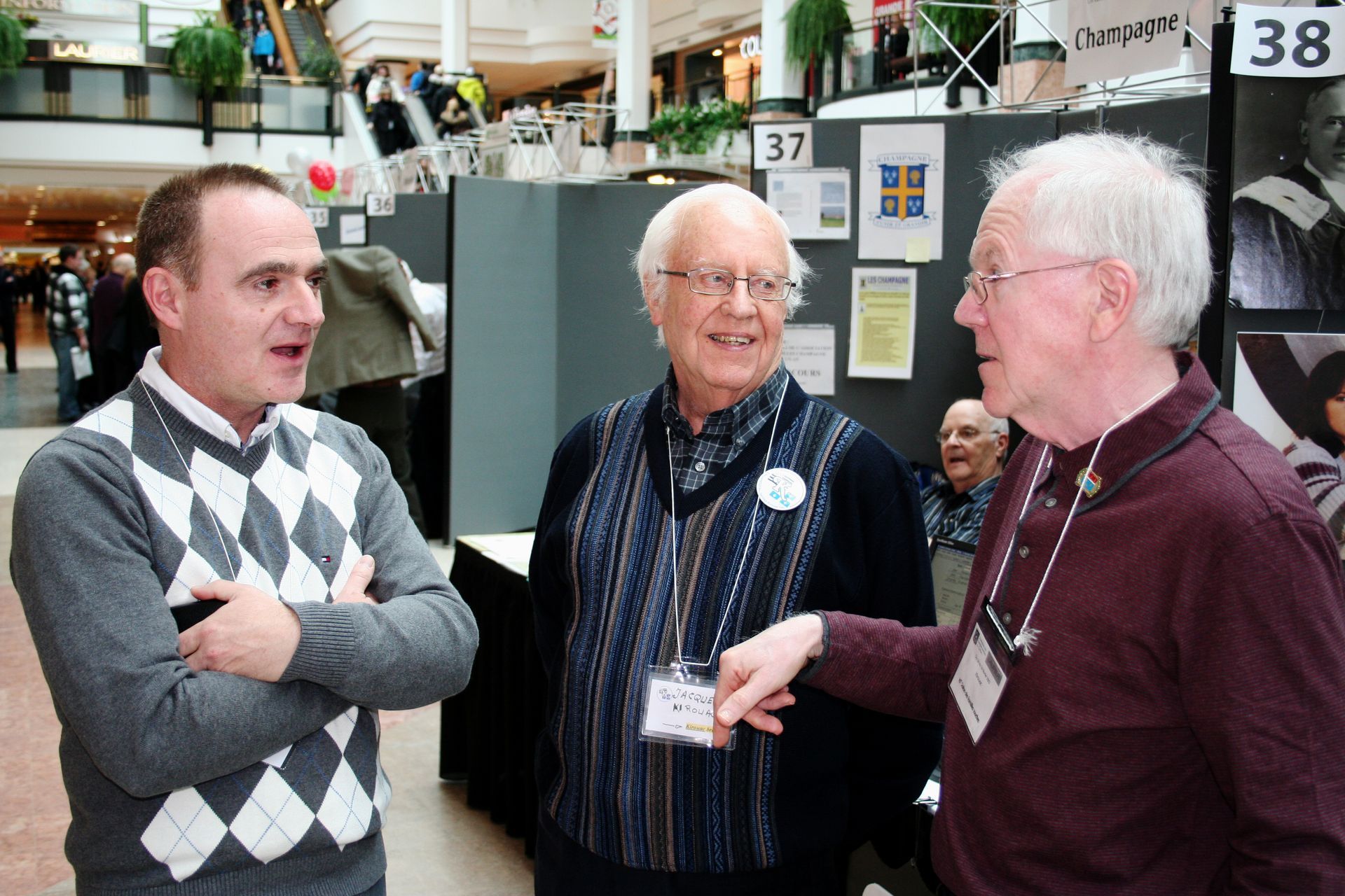 Jacques Kirouac et Michel Bornais en discussion avec un des responsables du déroulement du Salon des familles souches.
