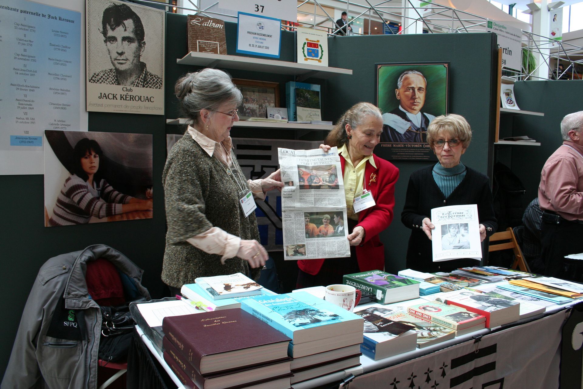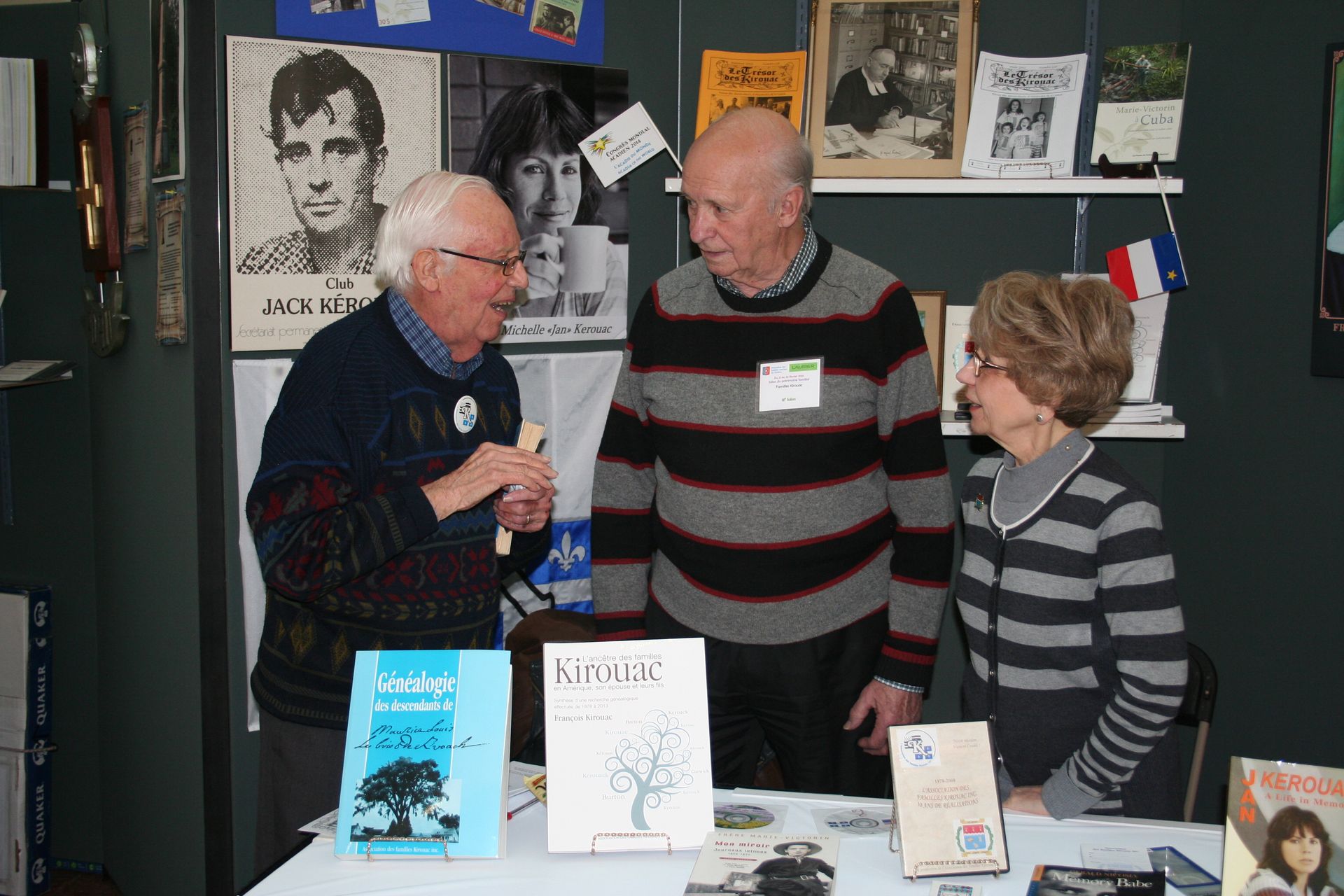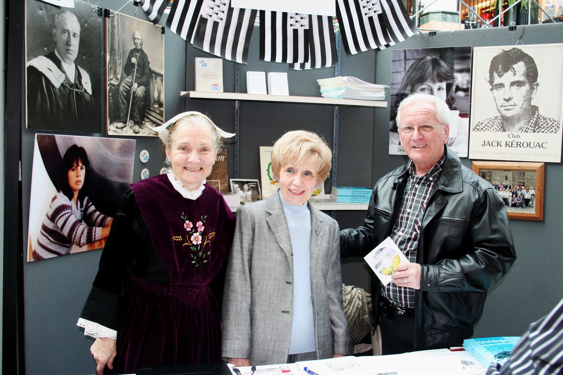Jacqueline Faucher Asselin, maître généalogiste agréée; Éric Waddell, responsable de l’Observatoire Jack Kerouac de L’Association des familles Kirouac. Françoise Drézen, amie bretonne.