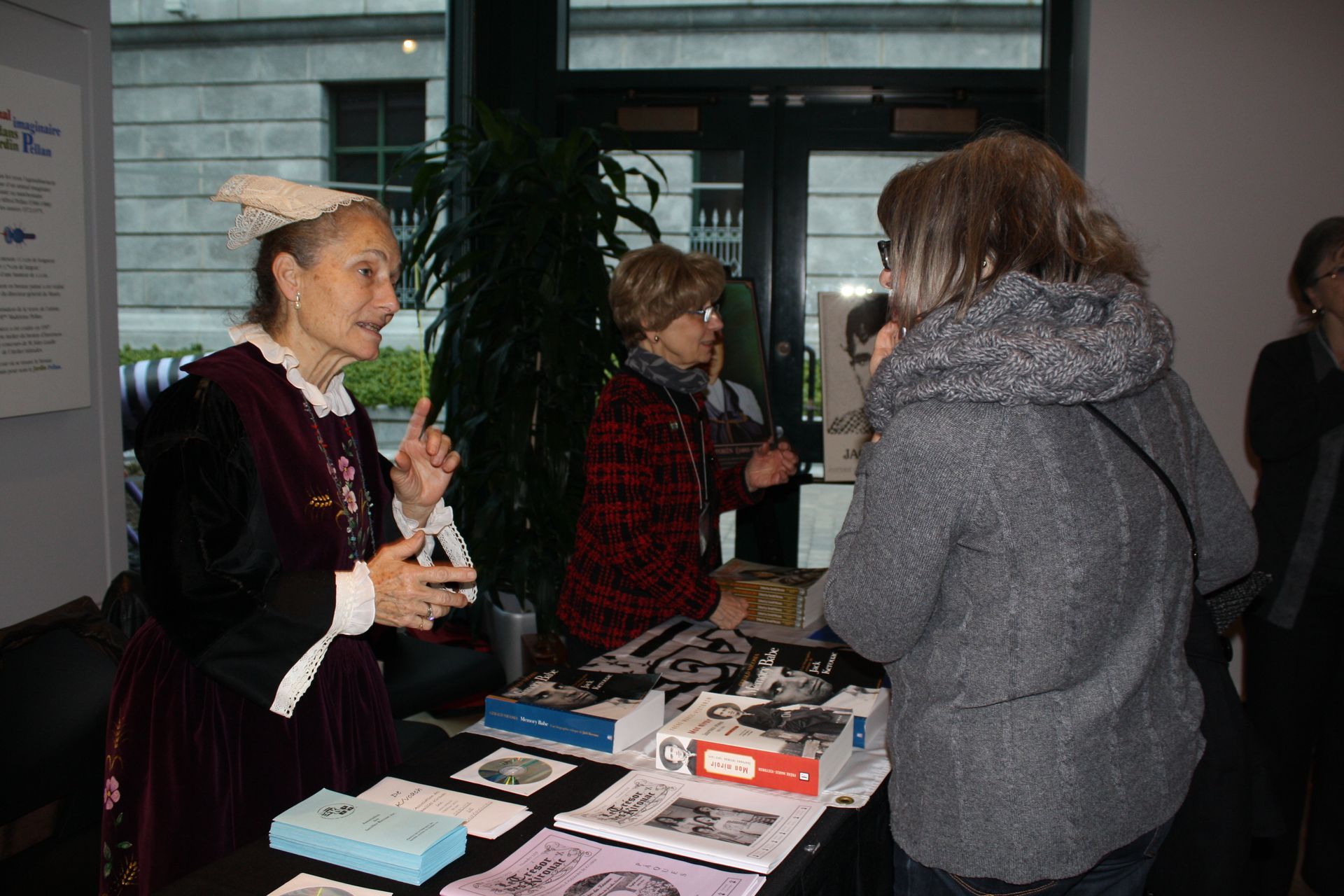Des représentantes de l’AFK se sont relayées à la table d’informations. Marie Lussier Timperley, en costume breton et Céline Kirouac répondent aux questions concernant aussi bien l’événement lui-même, que Jack Kerouac ou l’Association.