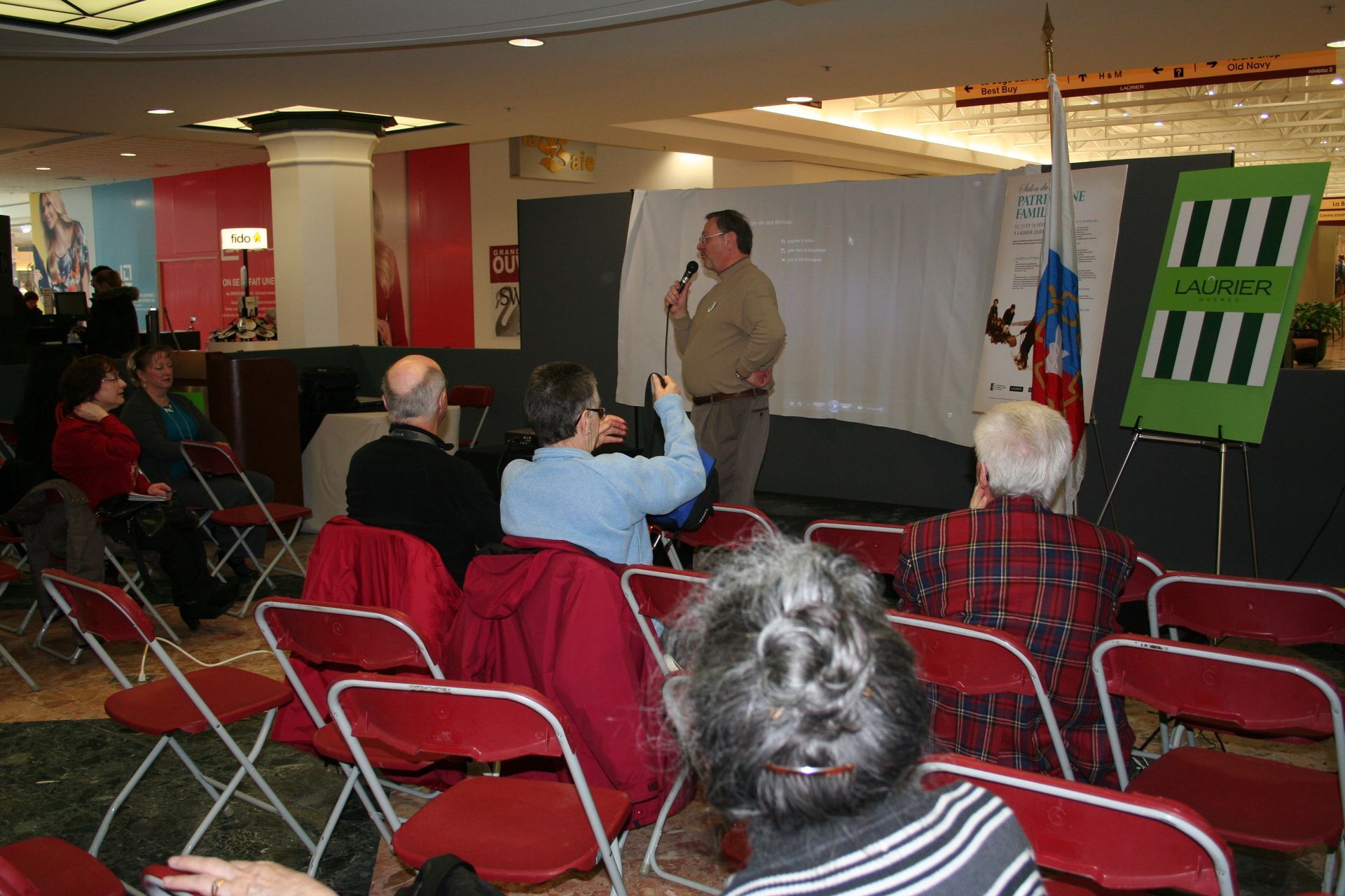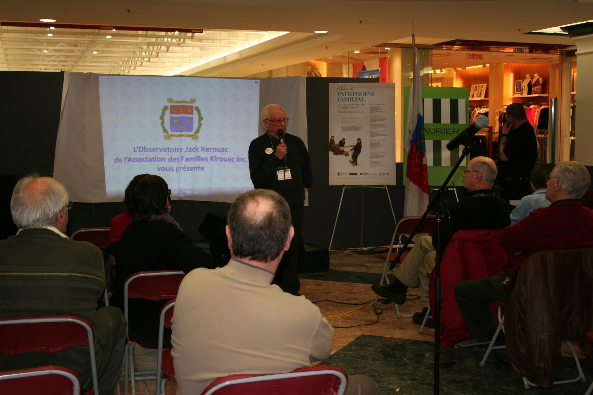 La tenue du Salon du patrimoine 2013 fut l'occasion de présenter un document préparé par l'Observatoire Jack Kerouac sur l'auteur franco-américain à l'occasion d'un événement qui a souligné le 25e anniversaire de la Rencontre internationale Jack Kerouac à Québec à l'automne 2012. Ici, Jacques Kirouac présente François Kirouac qui commentera le diaporama.