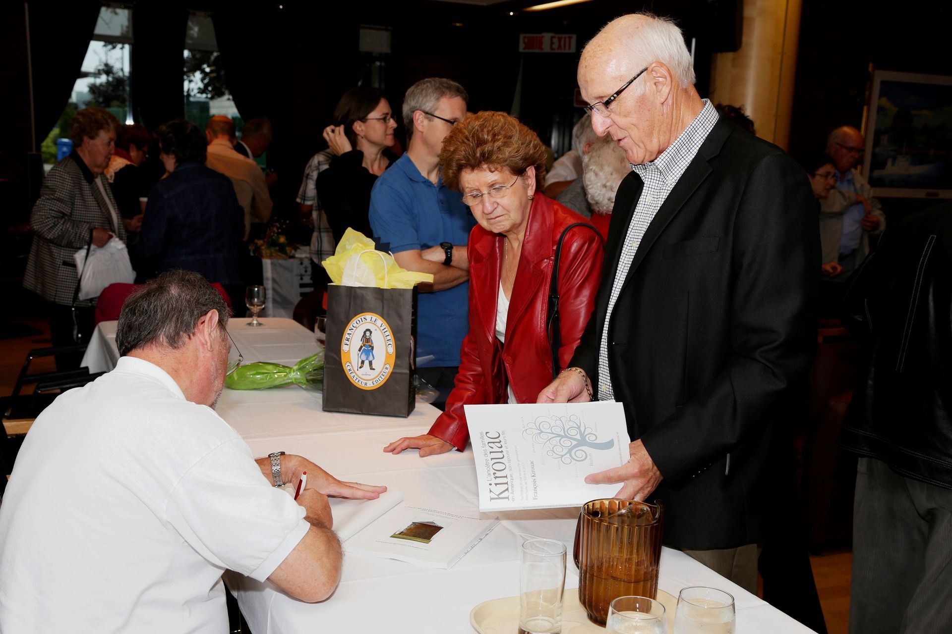 On peut se procurer le livre L’Ancêtre des familles Kirouac d’Amérique, son épouse et leurs fils. À la vente : Lucille Kirouac, Jacques Boulet, et Patrice Royer.