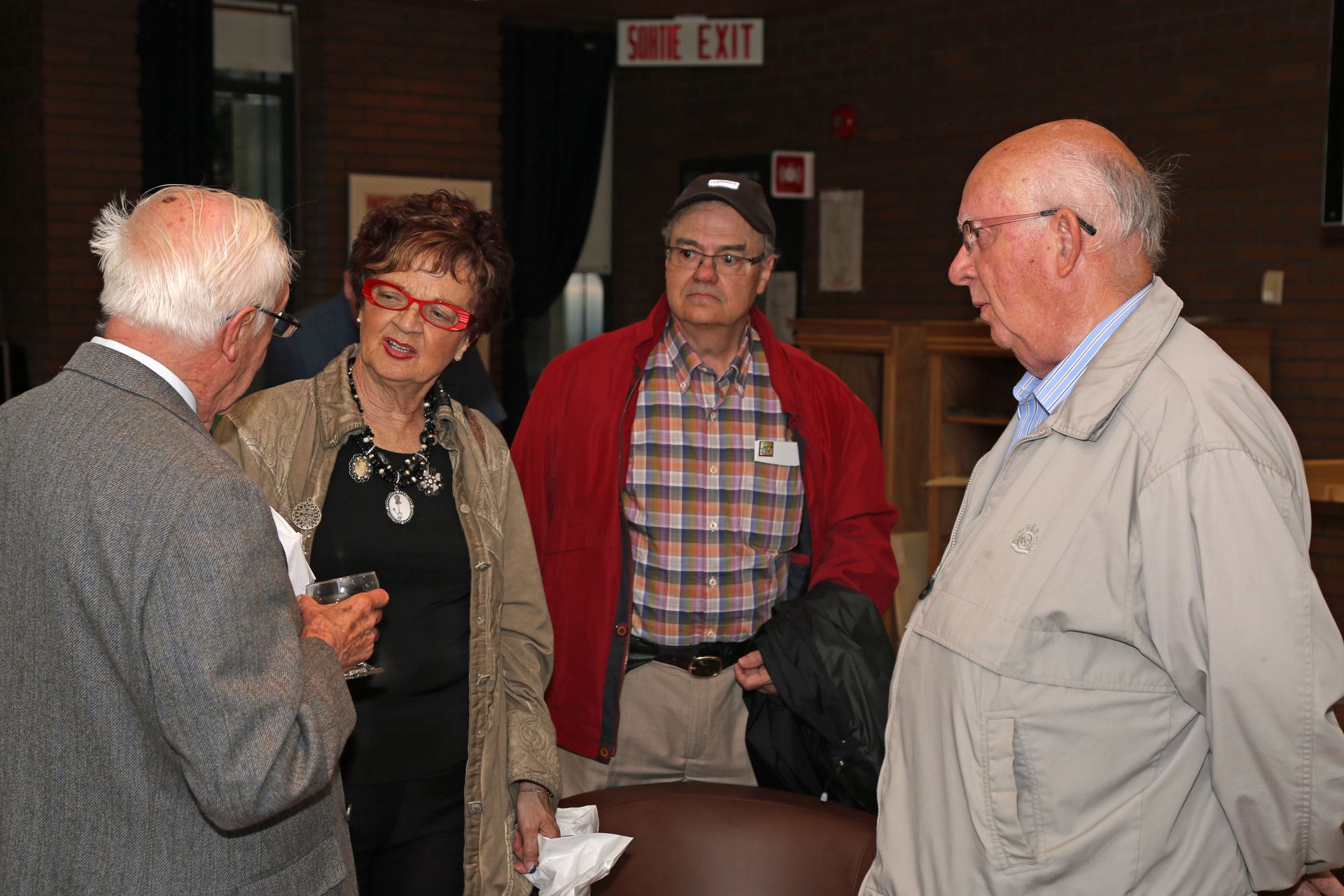 Céline Kirouac, François Kirouac et Michel Bornais en discussion avec André Kirouac de Sainte-Croix-de-Lotbinière.