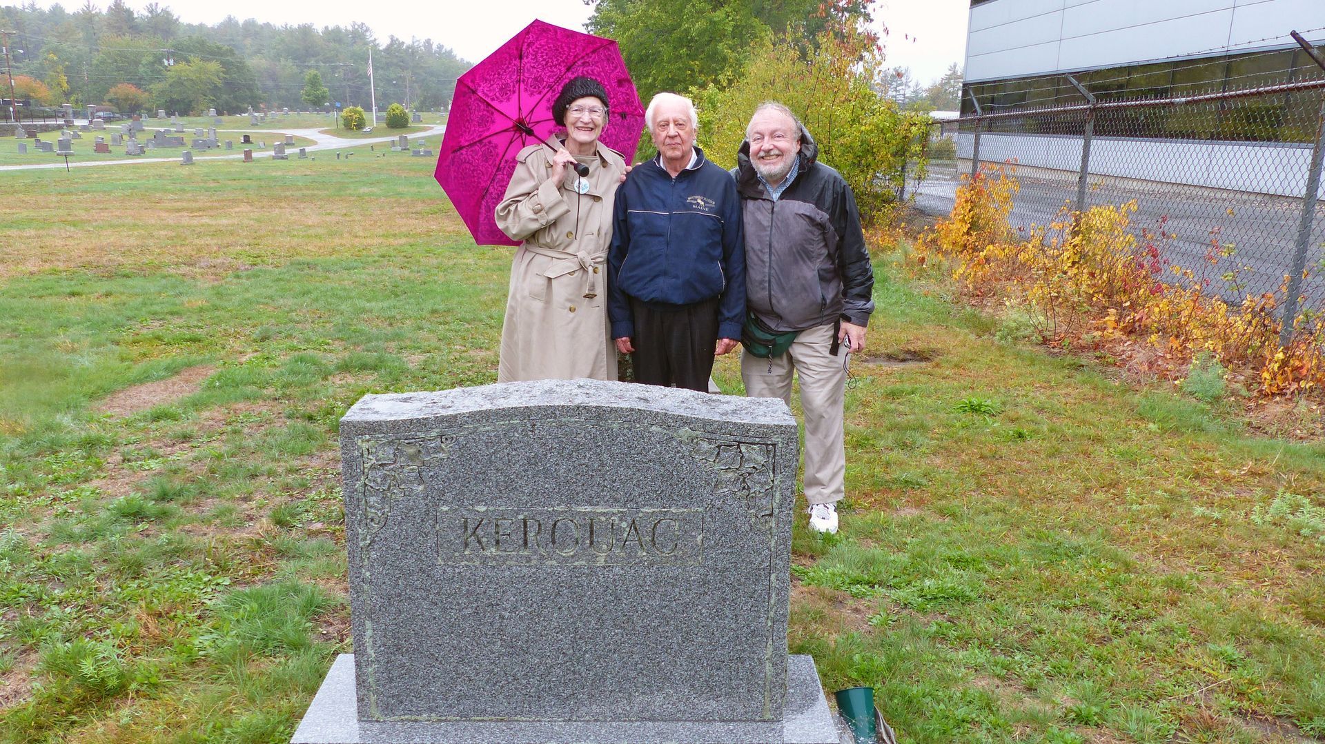 Janet Michelle Kerouac est décédée le 5 juin 1996 et repose au cimetière Saint-Louis-de-Gonzague de Nashua (N.H), avec son oncle Gérard ainsi que ses grands-parents Léo-Alcide et Gabrielle. Sur la photo : Mary Emmerick, Jacques Kirouac et Gerald Nicosia.