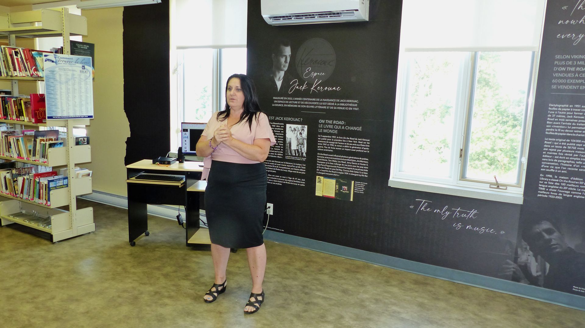 19 juillet 2023, madame Josée Ouellet, mairesse de Saint-Hubert-de-Rivière-du-Loup, procédant à l'inauguration officielle de l'Espace Jack Kerouac.