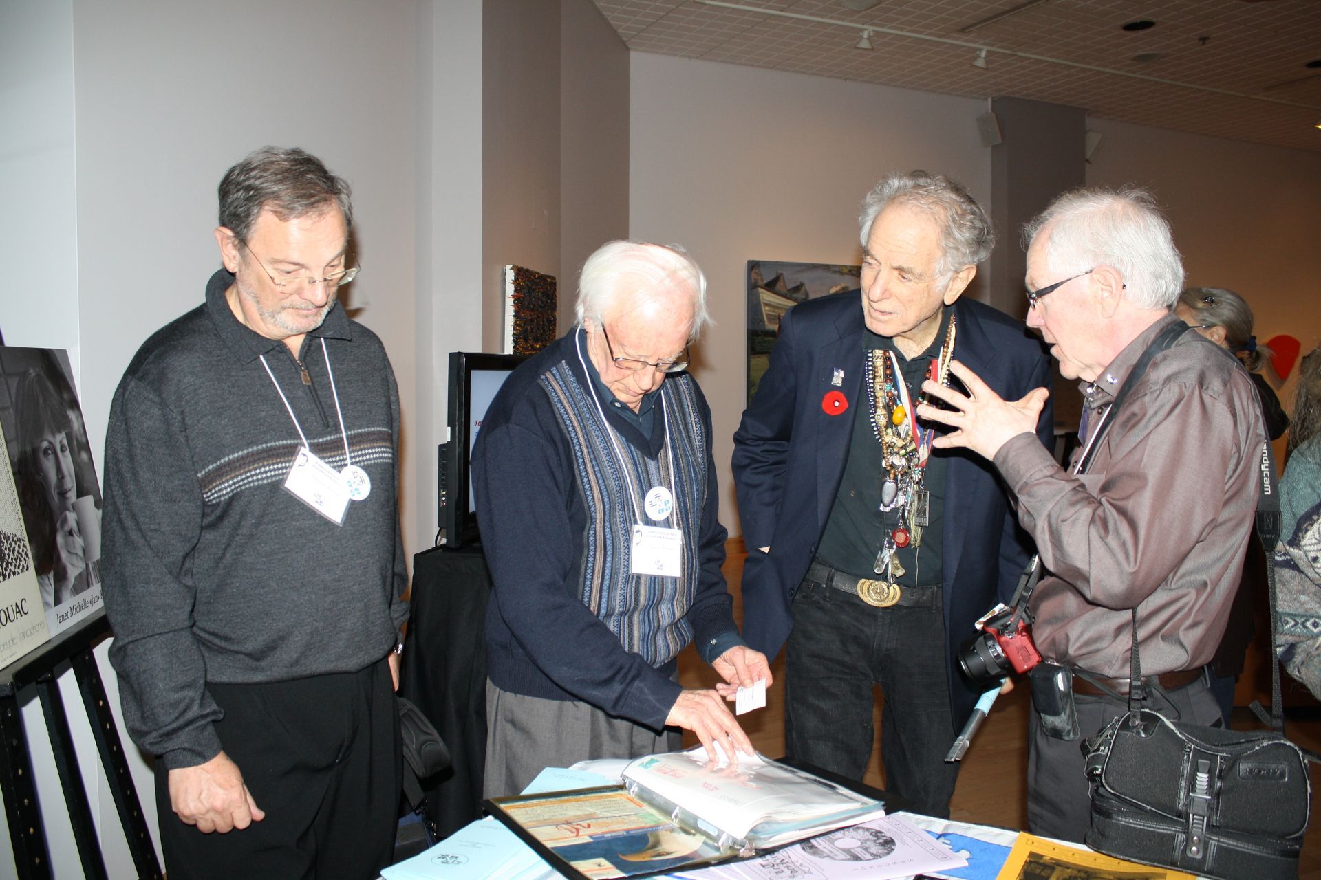 Raôul Duguay, auteur-compositeur-interprète et poète présent lors de l’événement Québec/Kerouac 2012, la représentante du Musée national des beaux-arts du Québec et le président de l’Association des familles Kirouac, François Kirouac.